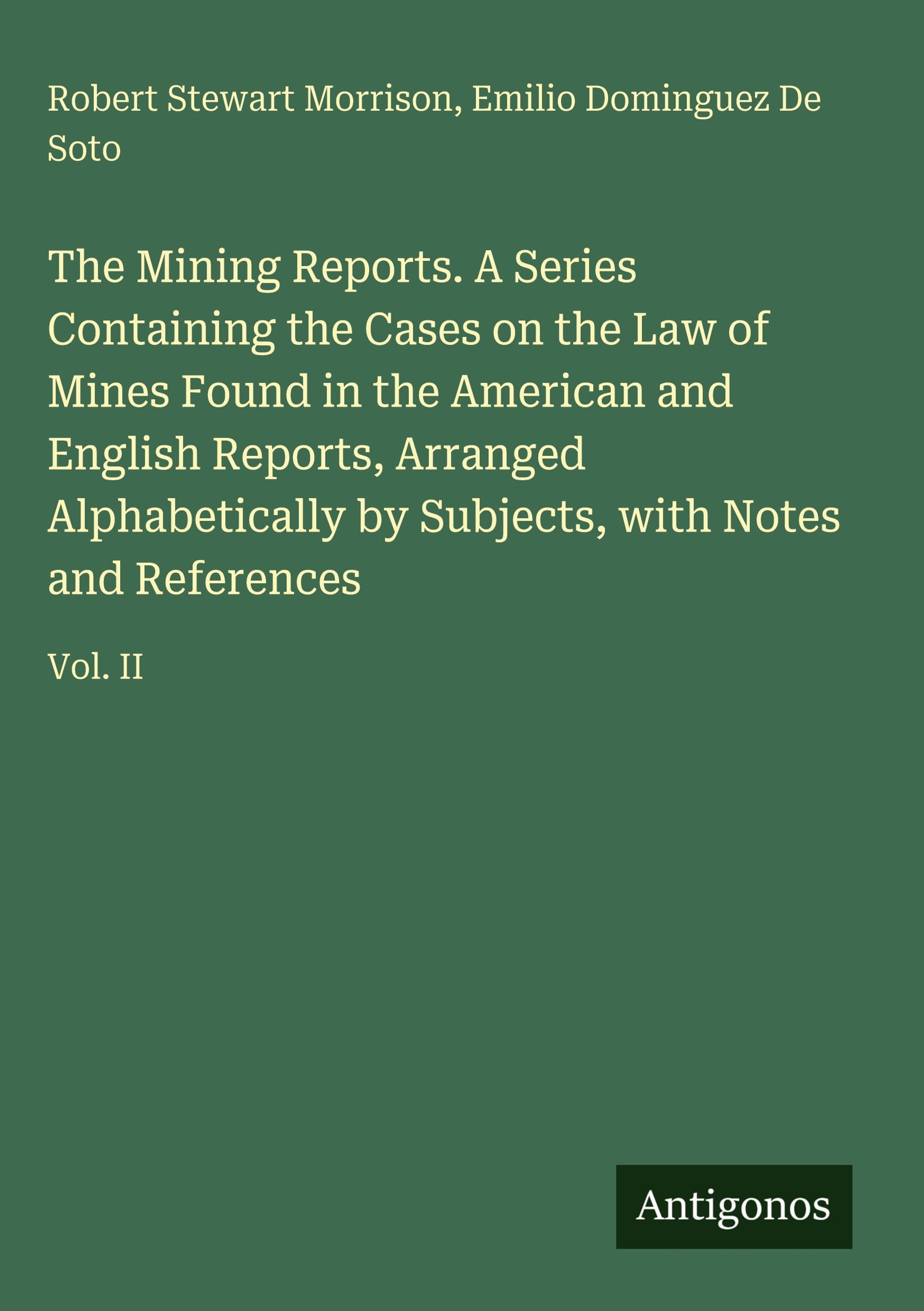 Robert Stewart Morrison: The Mining Reports. A Series Containing the Cases on the Law of Mines Found in the..., Gebunden