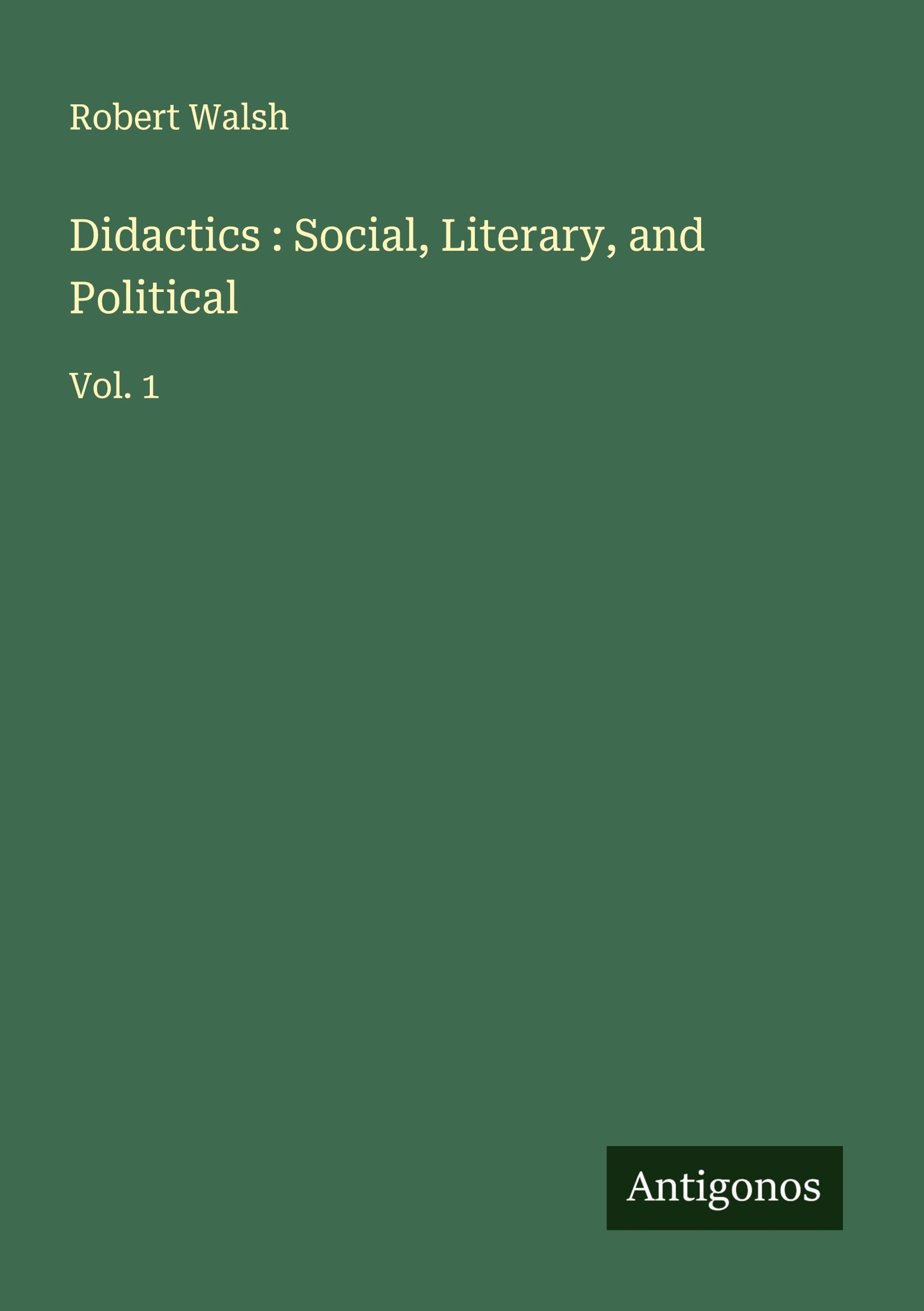 Robert Walsh: Didactics : Social, Literary, and Political, Kartoniert / Broschiert