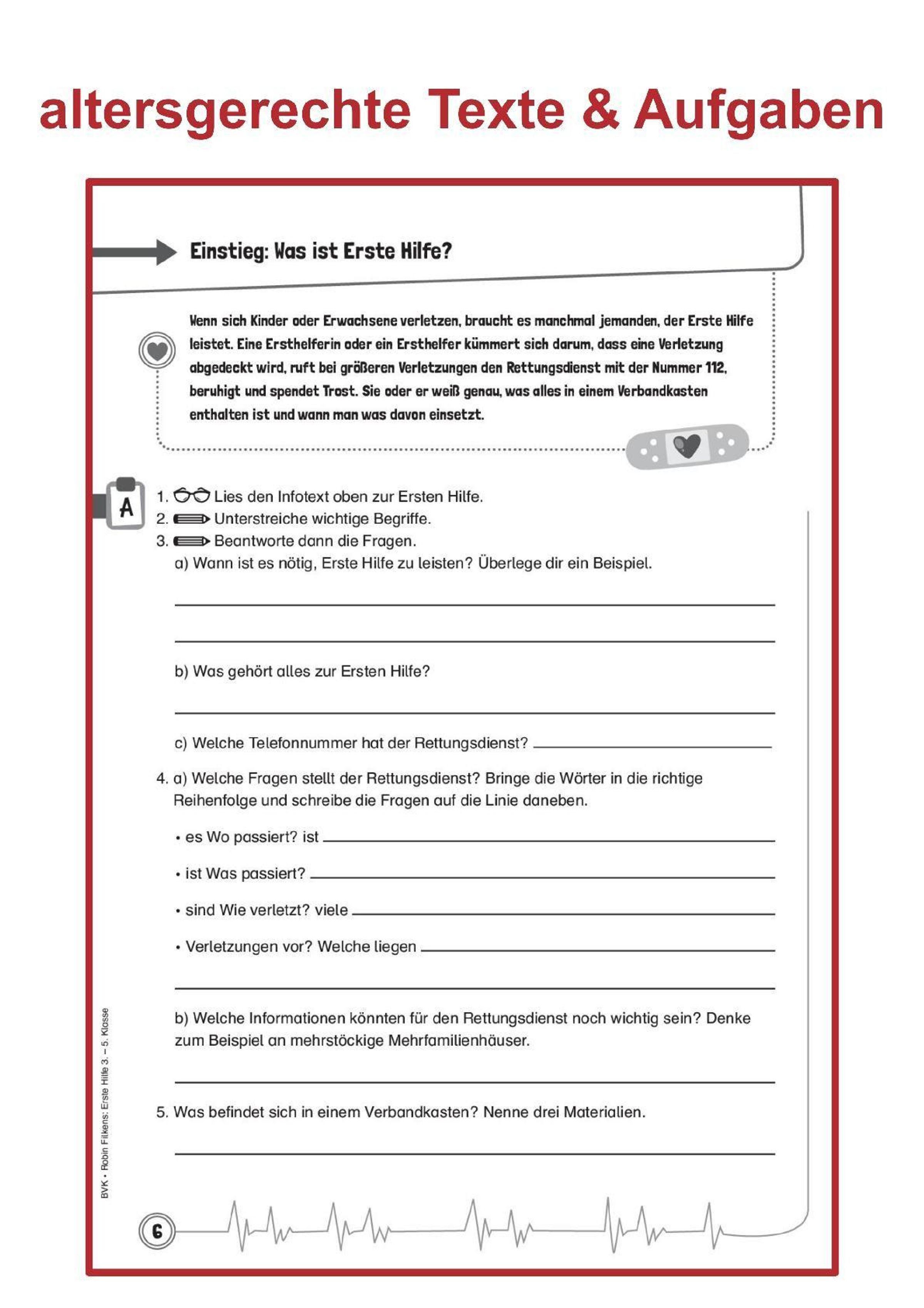 Neben wichtigen Grundlagen wie der Rettungskette, dem Heimlich-Griff oder der stabilen Seitenlage, geht es auch um das richtige Verhalten in Ausnahmesituationen: ruhig bleiben, Trost spenden, Hilfe holen. So kann das Selbstvertrauen und die Handlungskompetenz der Kinder gestärkt werden. Wunderbar geeignet für den Sachunterricht, die Projektarbeit und den Einstieg in die Gesundheitsbildung.