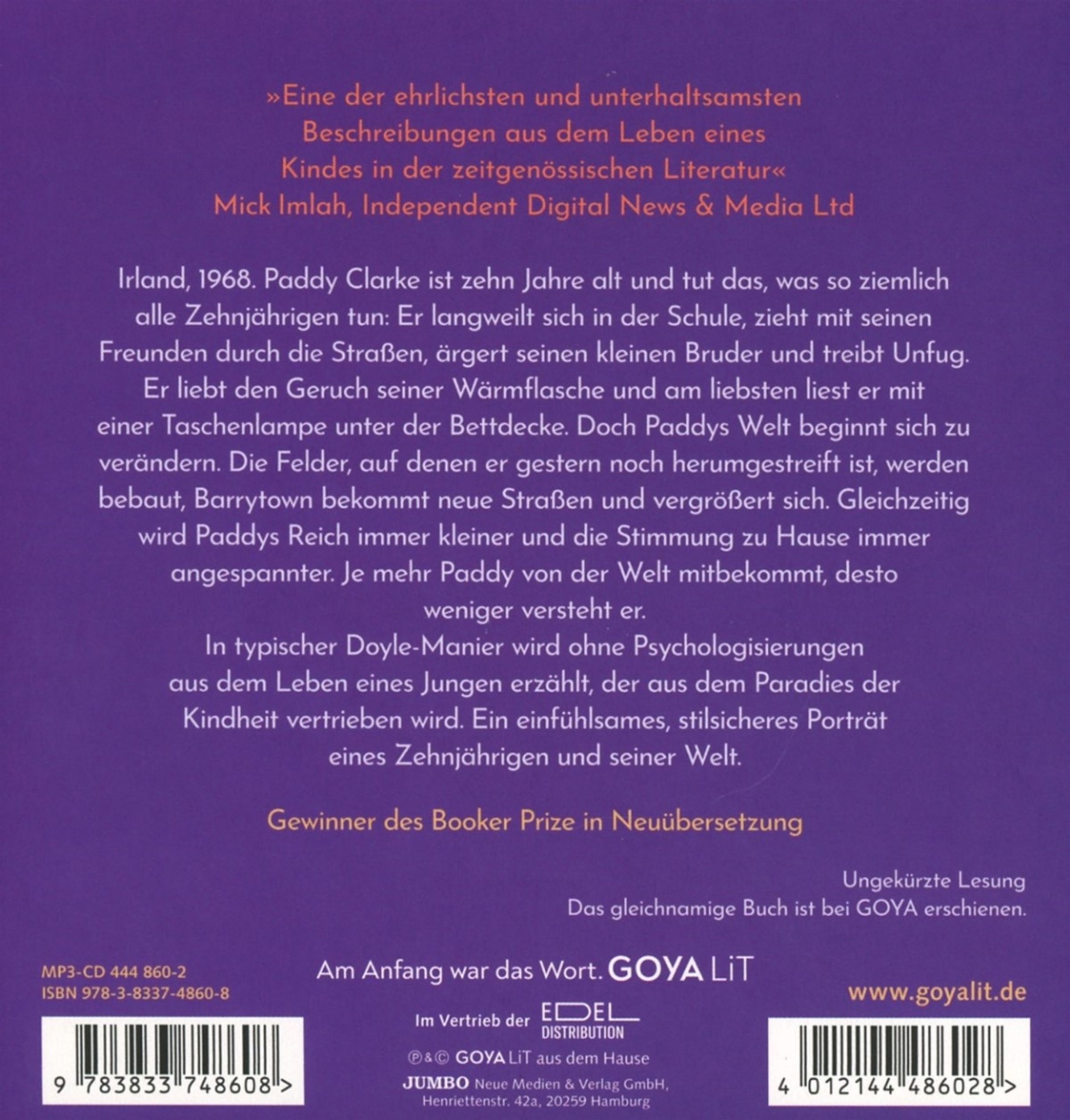 Die gleichnamige Buchausgabe des Romans, für dessen Originalausgabe Doyle 1993 mit dem Booker Prize ausgezeichnet wurde, erscheint bei GOYA.