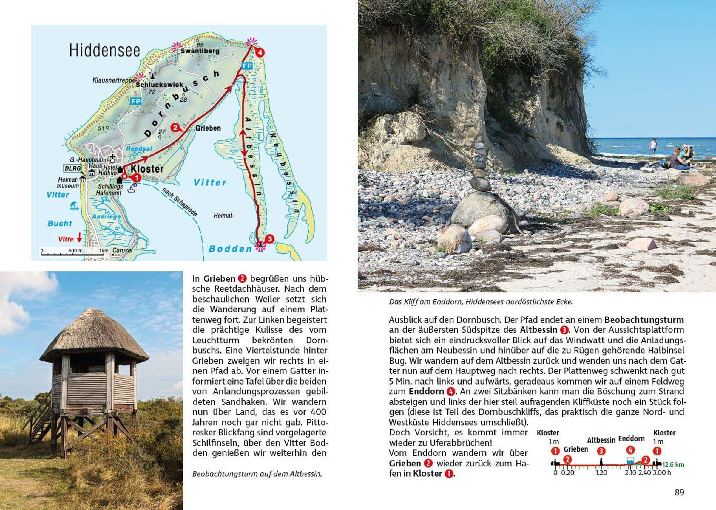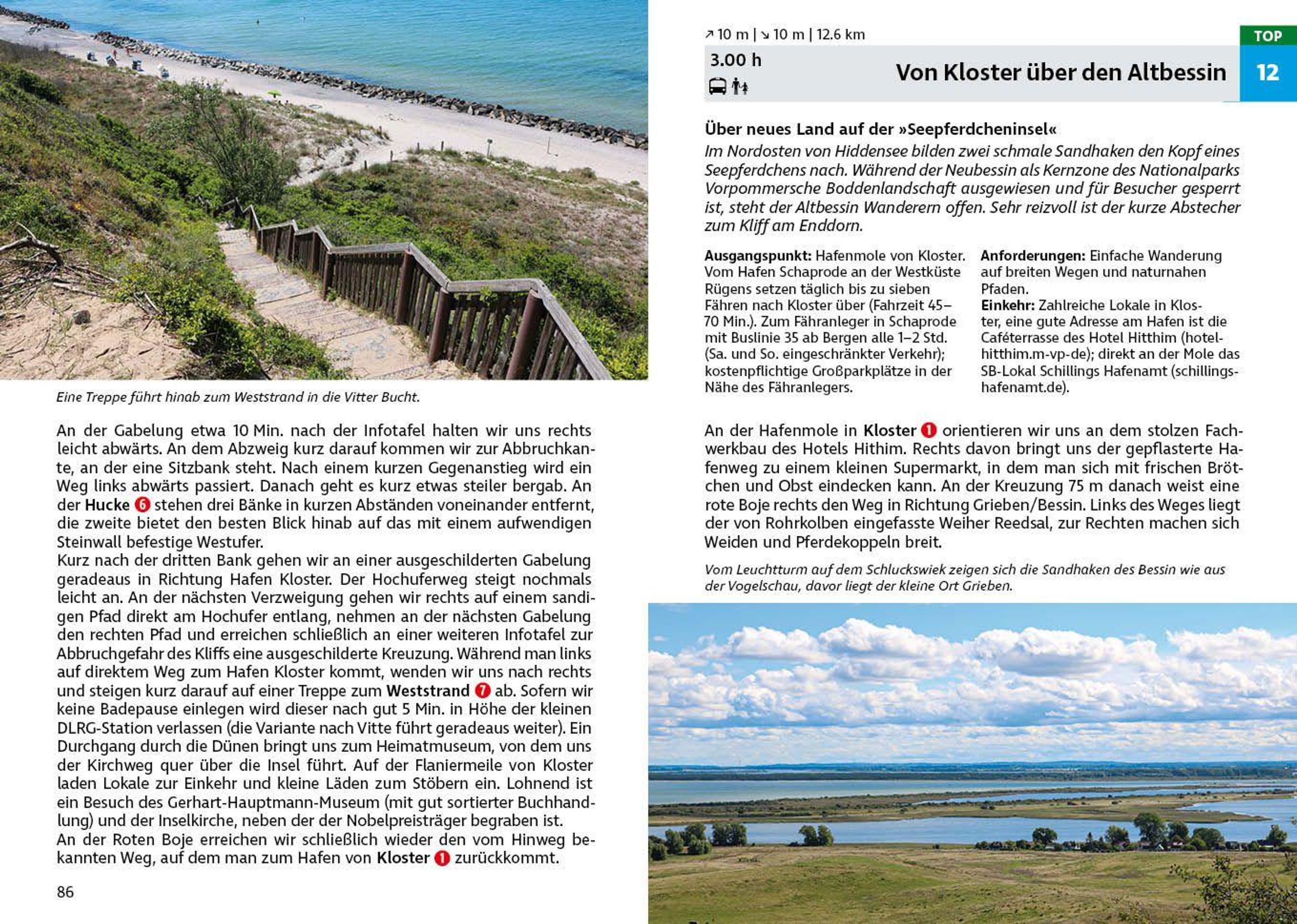 Naturliebhaber kommen auf ihre Kosten: Zwei Nationalparks, ein Biosphärenreservat sowie zahlreiche Natur- und Vogelschutzgebiete bieten ideale Bedingungen für ausgedehnte Wanderungen. Ein besonderes Erlebnis ist ein Ausflug auf die autofreie Insel Hiddensee, deren idyllische Wanderwege im Wanderführer ausführlich vorgestellt werden. Auch die Halbinsel Fischland-Darß-Zingst, bekannt für ihre unberührte Natur und kilometerlange Ostseestrände, bietet abwechslungsreiche Wanderungen für jeden Geschmack.
