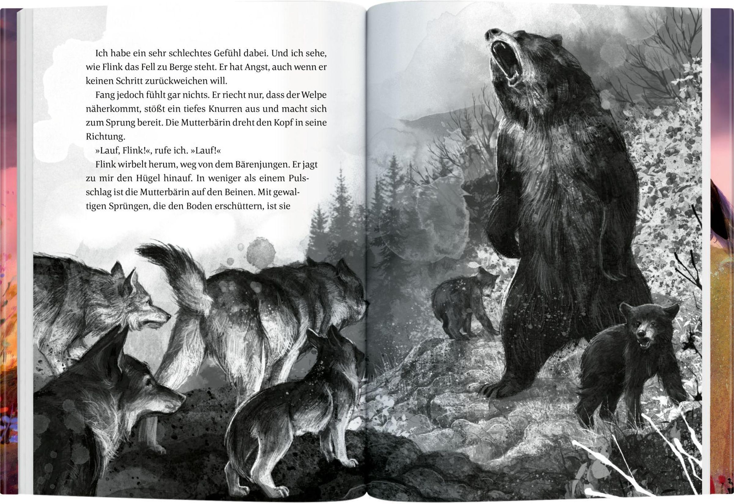 Mutter zieht mich mit ihrer Pfote näher zu sich heran. 'Ich weiß ein Geheimnis', sagt sie leise. 'Groß sein ist nicht das Einzige, was zählt für einen Wolf.'