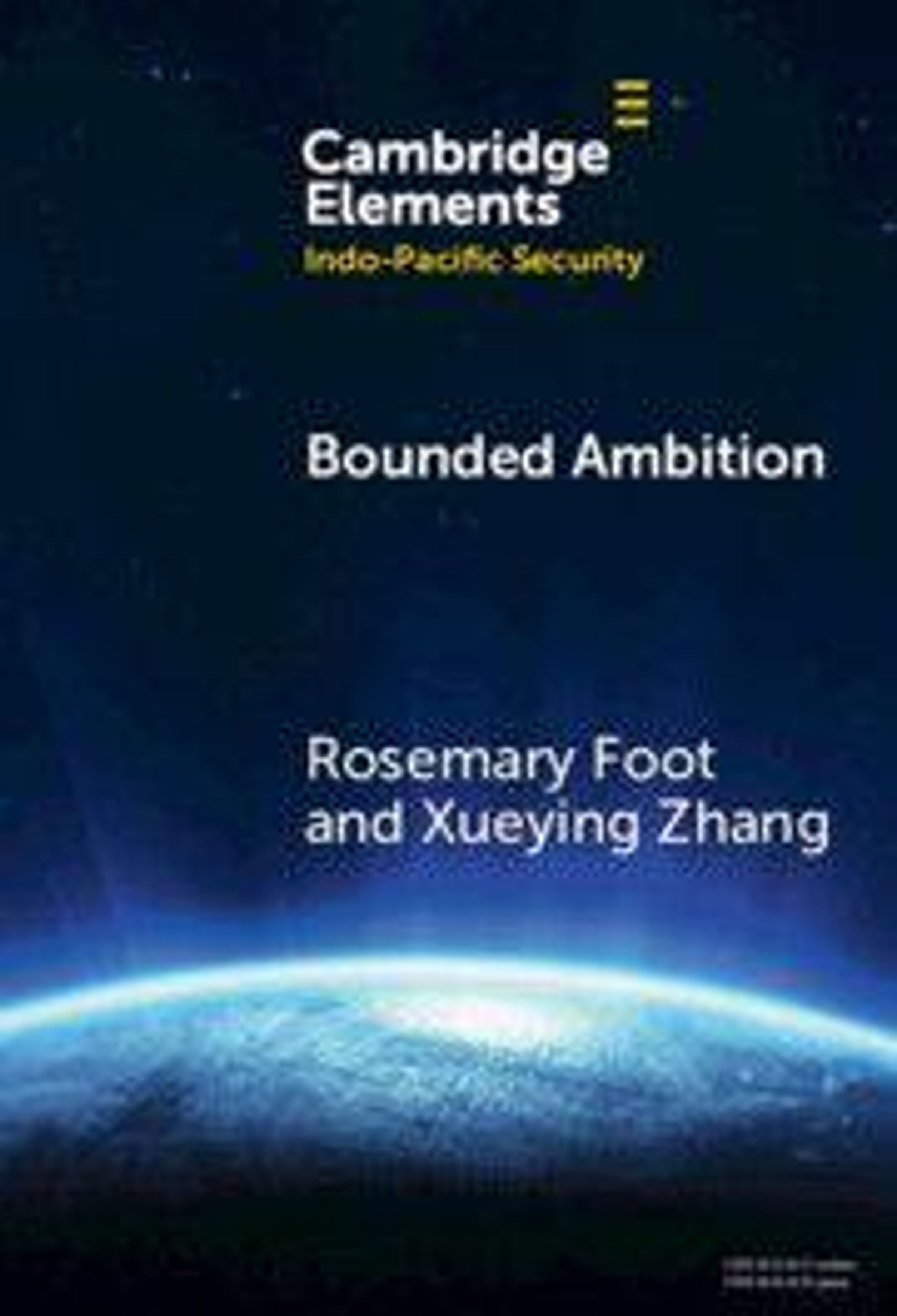 Text: "Cambridge Elements: Indo-Pacific Security", "Bounded Ambition", "Rosemary Foot and Xueying Zhang". Erde im Weltall., Buch