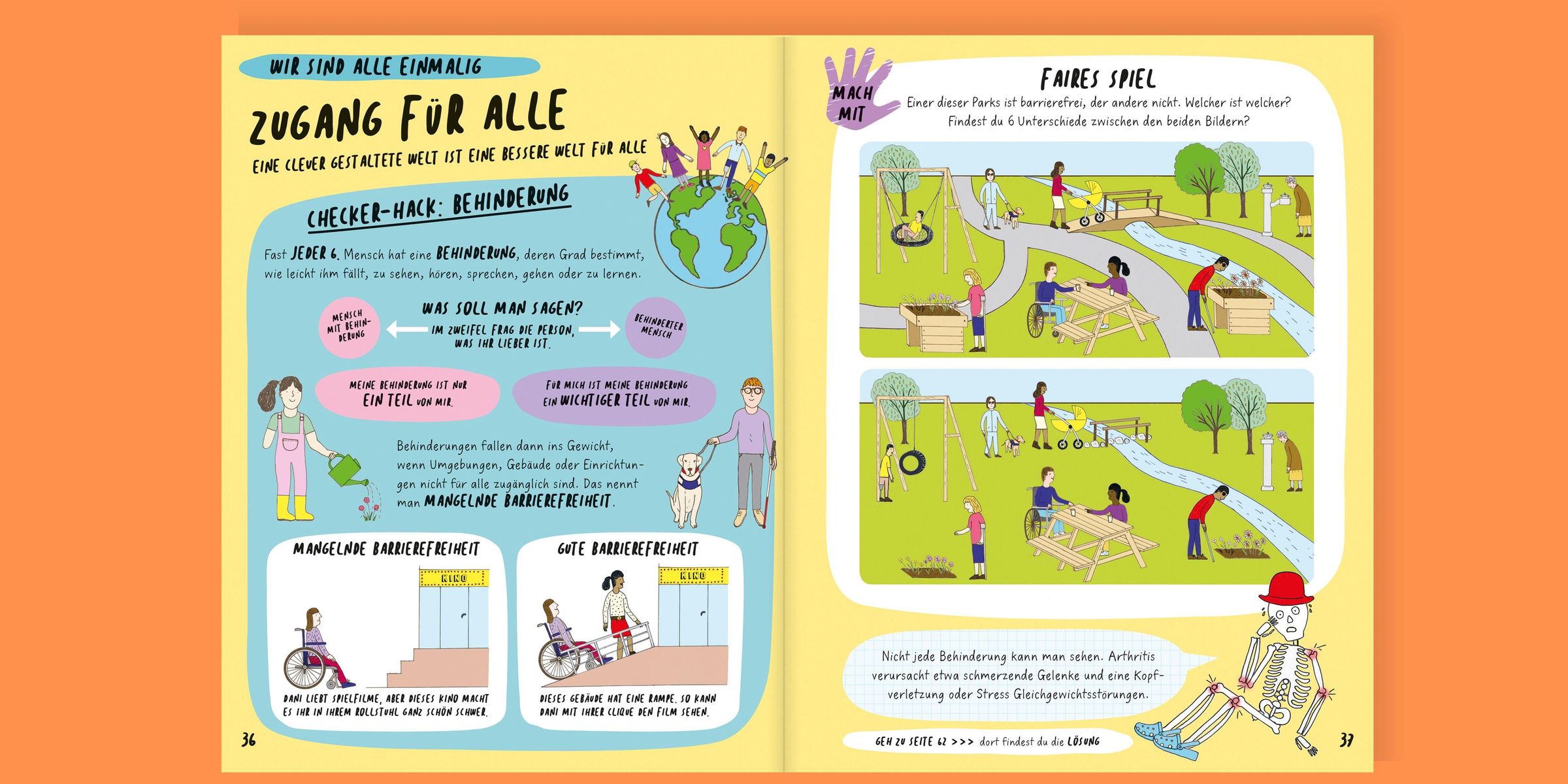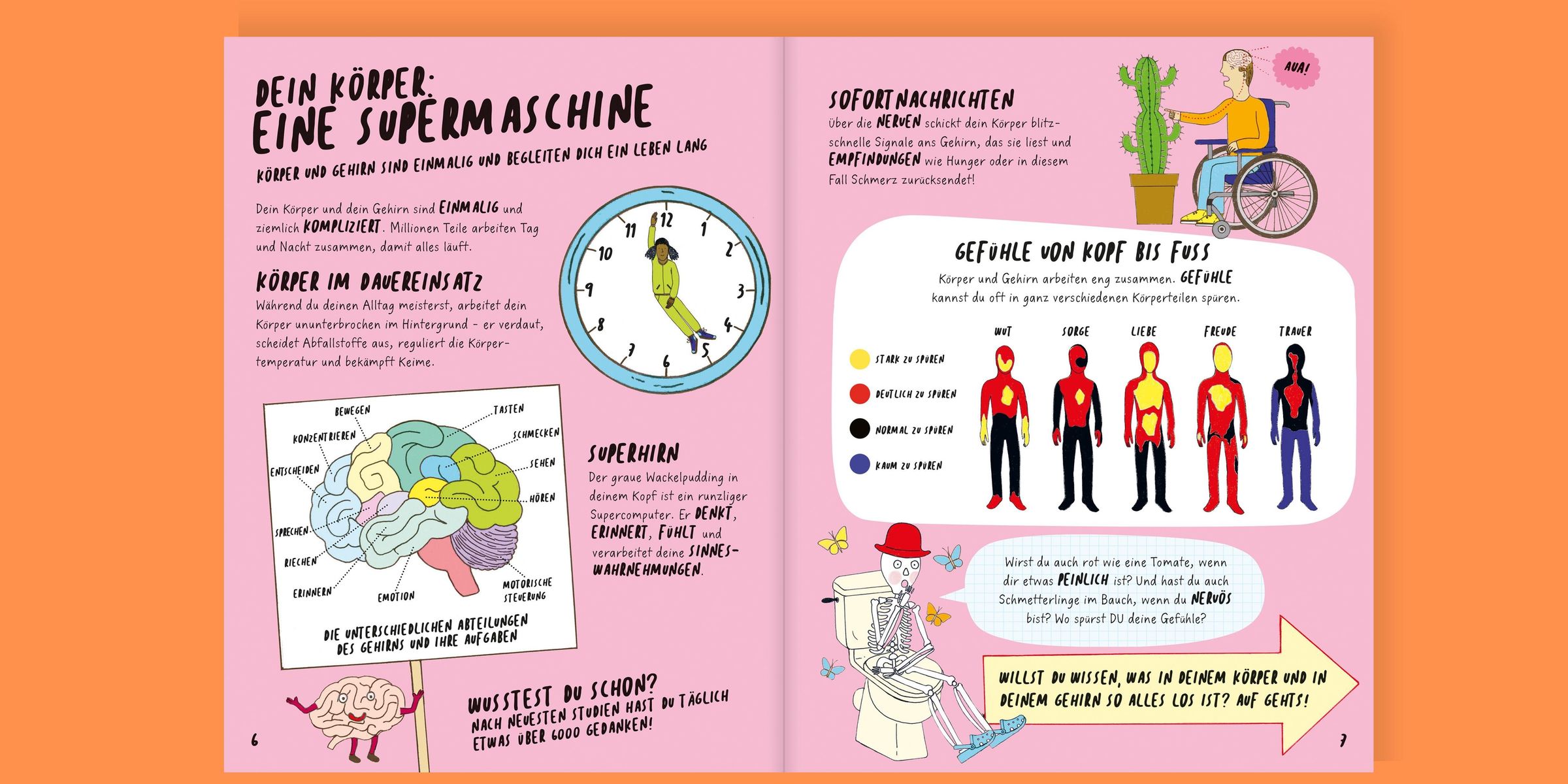 mit witzigen Comics und Mitmachaufgaben: Gehirnalarm ausschalten, mit den Ohren wackeln und Verdauungszeit messen