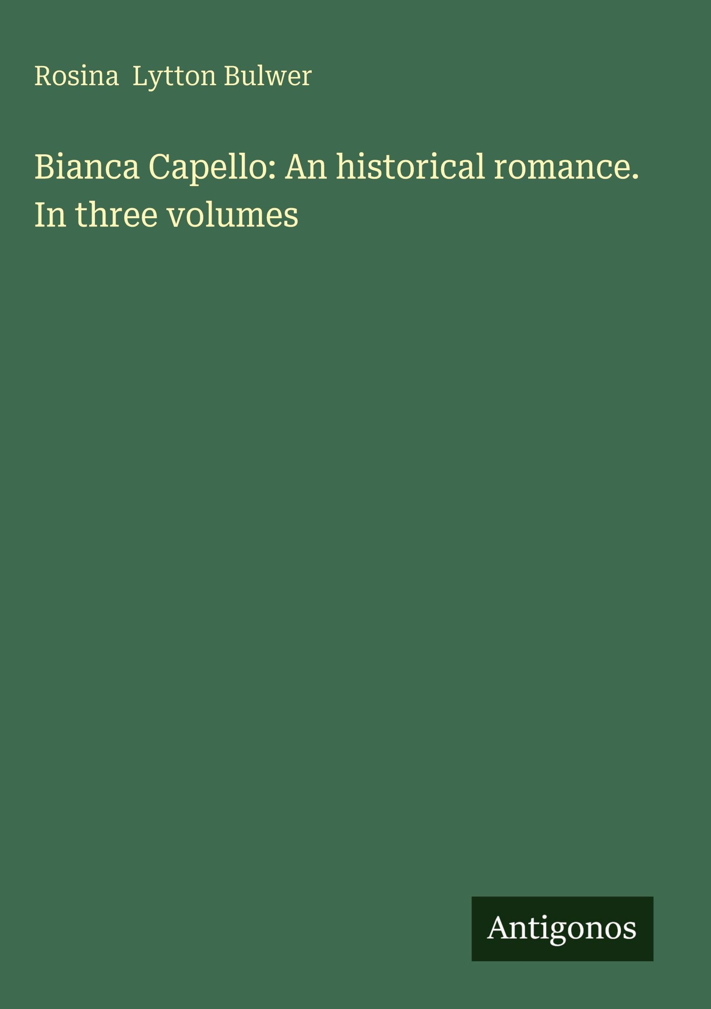 Rosina Lytton Bulwer: Bianca Capello: An historical romance. In three volumes, Gebunden