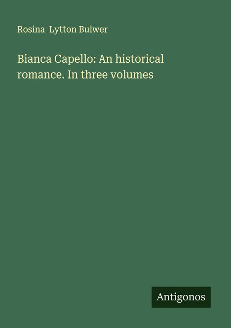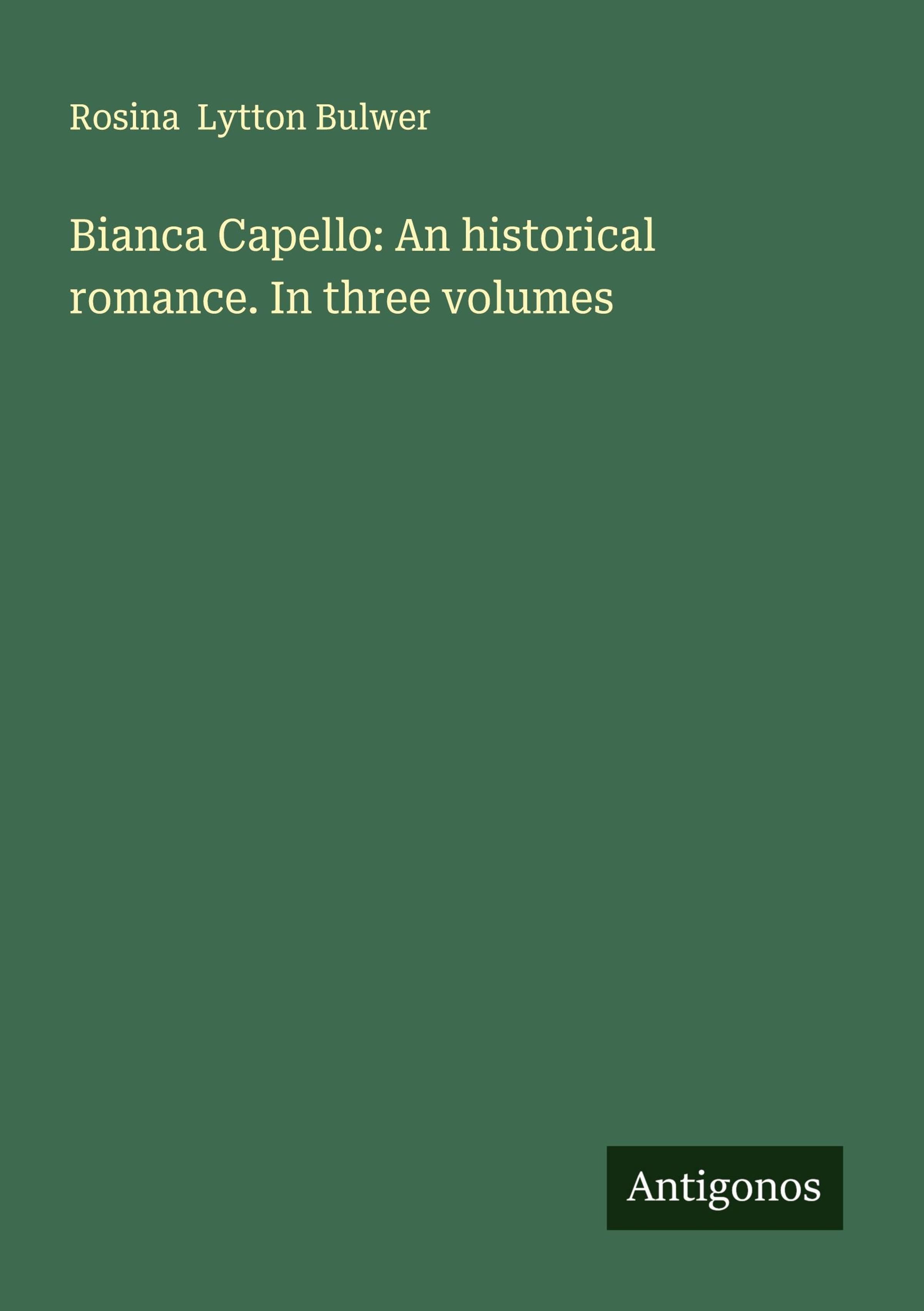 Rosina Lytton Bulwer: Bianca Capello: An historical romance. In three volumes, Kartoniert / Broschiert