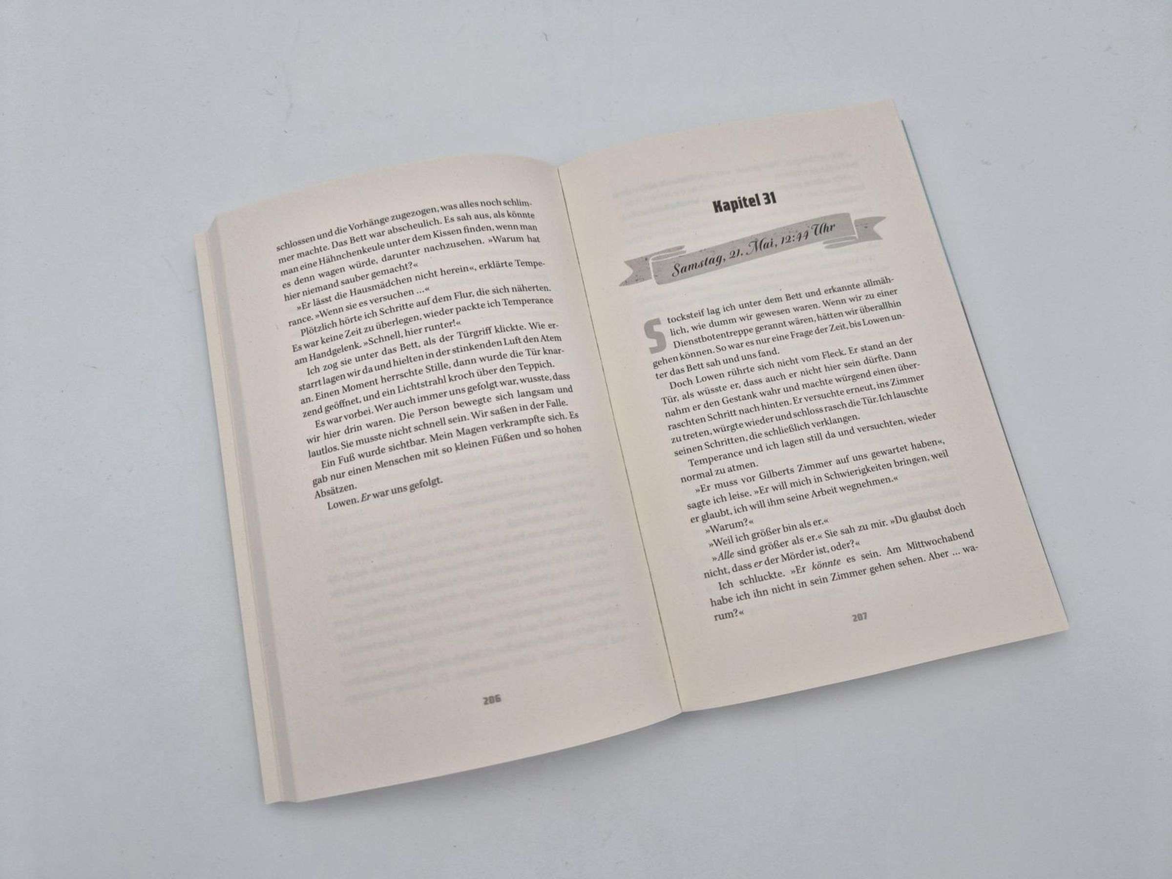 'Miss Decima klatschte in die Hände. Wir werden mit Vernunft und Logik vorgehen und diesen Mord wissenschaftlich aufklären. Erst nach einem Moment wurde mir klar, was sie da gerade gesagt hatte. Wir, wiederholte ich. Ja, wir!, bestätigte Miss Decima. 'Ich bin als Einzige in diesem Haus schlau genug, um dieses Rätsel zu lösen, und du wirst meinen Rollstuhl schieben. Du musst auch für mich meine Verwandtschaft ausspionieren, Gespräche belauschen, Verdächtige bedrohen, die Polizei belügen und vielleicht auch ein paar Finger brechen. Und du wirst dabei sehr effizient vorgehen müssen, Stephen, denn wenn wir den wahren Täter nicht bald finden, dann bist du geliefert.'