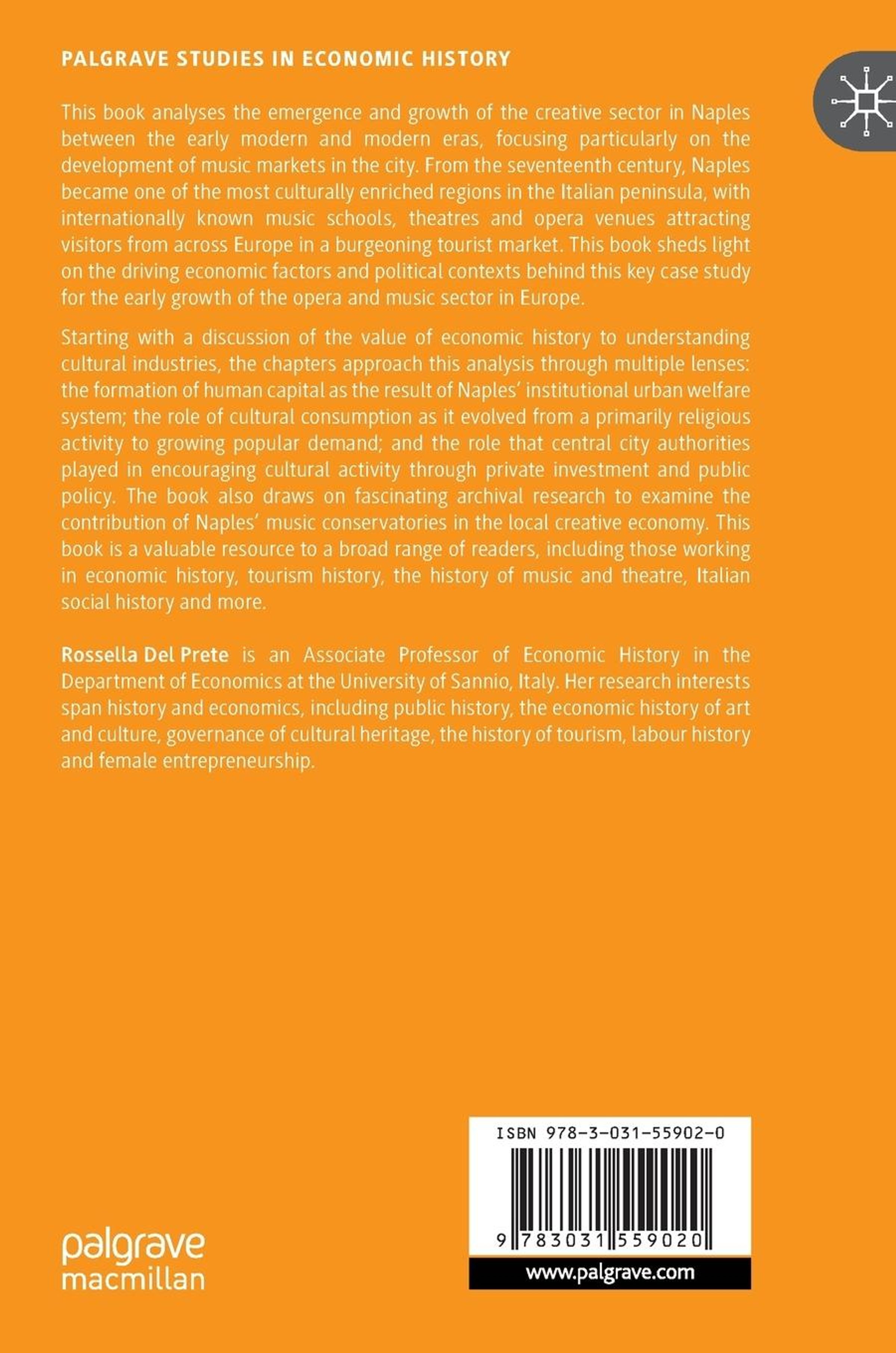 This book analyses the emergence and growth of the creative sector in Naples between the early modern and modern eras, focusing particularly on the development of music markets in the city. From the seventeenth century, Naples became one of the most culturally enriched regions in the Italian peninsula, with internationally known music schools, theatres and opera venues attracting visitors from across Europe in a burgeoning tourist market. This book sheds light on the driving economic factors and political contexts behind this key case study for the early growth of the opera and music sector in Europe.
