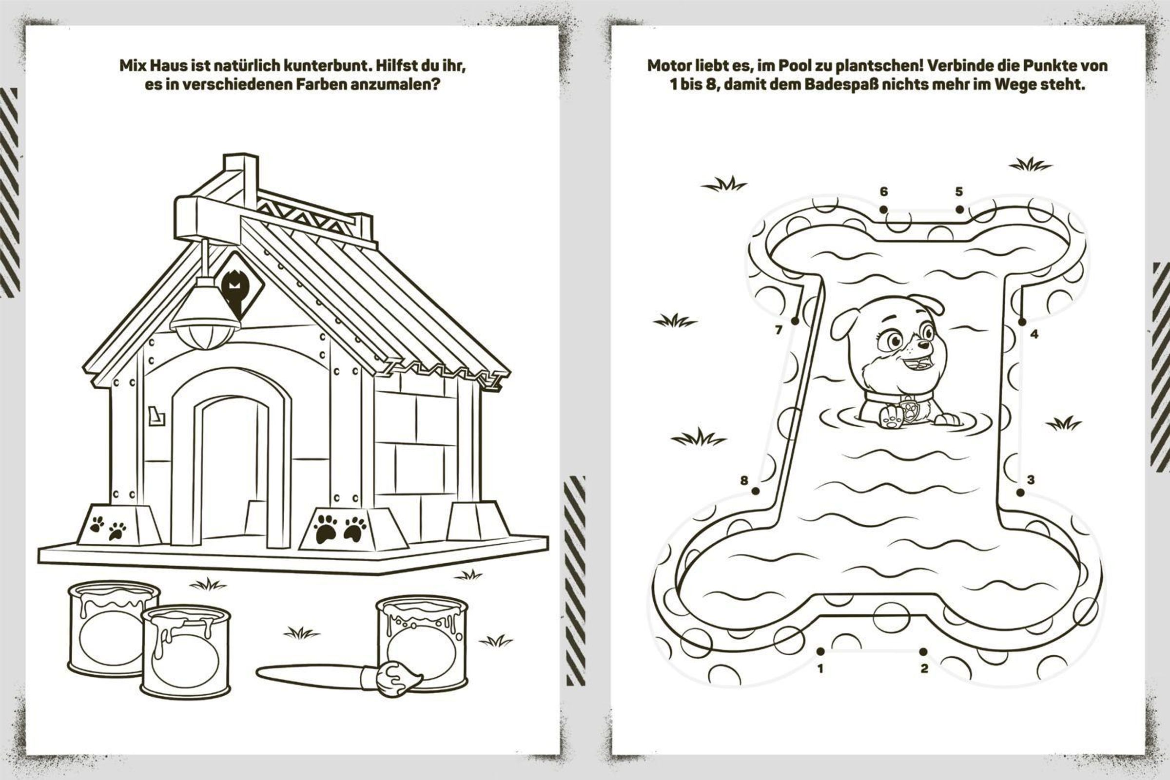 - Mehr als 60 Ausmalbilder mit allen Baupfoten