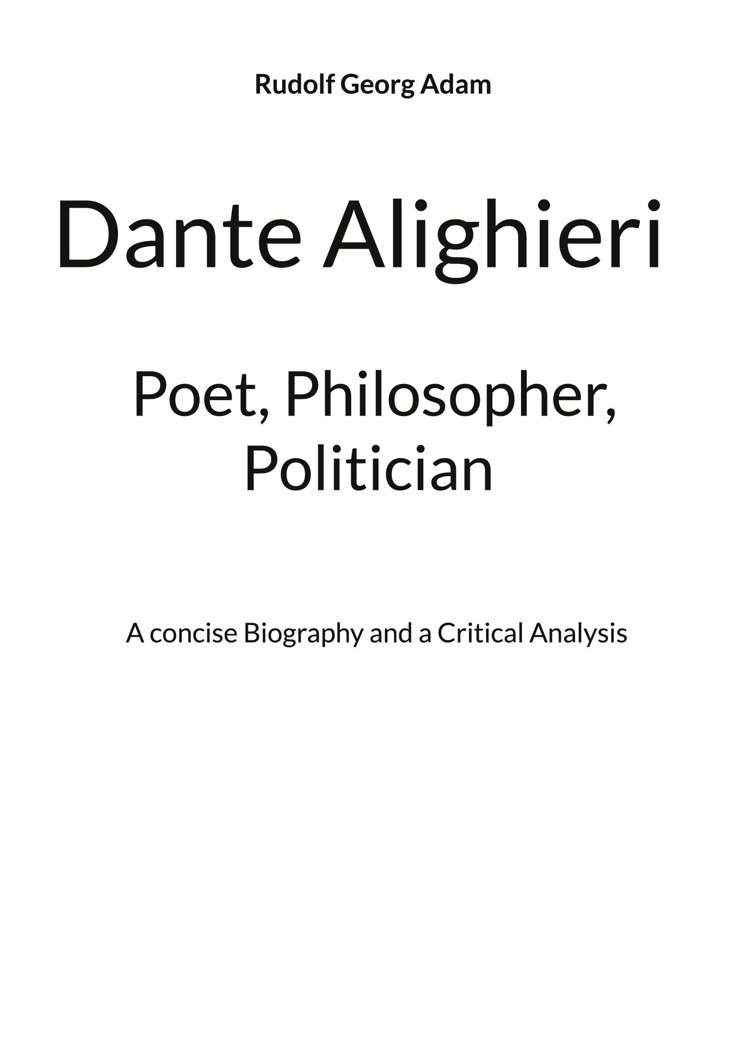 Dante Alighieri towers at the beginning of Italian, even European literature. He anticipated central ideas of the Renaissance and of ecclesiastical reforms. He is best known for his great poem, the Divine Comedy. His person and his character remain, however, shrouded in mystery. We have not a single line written by his own hand, we have only few and highly sporadic historical documents. Most of what we know about his life goes back to what Dante wrote about himself. These hints are unsystematic and strongly tinged by Dante's own attempt to portrait himself as an innocent victim. While fully appreciating Dante's singular poetic genius, this biography casts a critical light on his political aspirations and reconsiders his philosophical works, particularly those on political and natural philosophy.