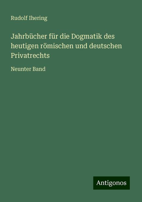 Ihering, R: Jahrbücher für die Dogmatik des heutigen römisch