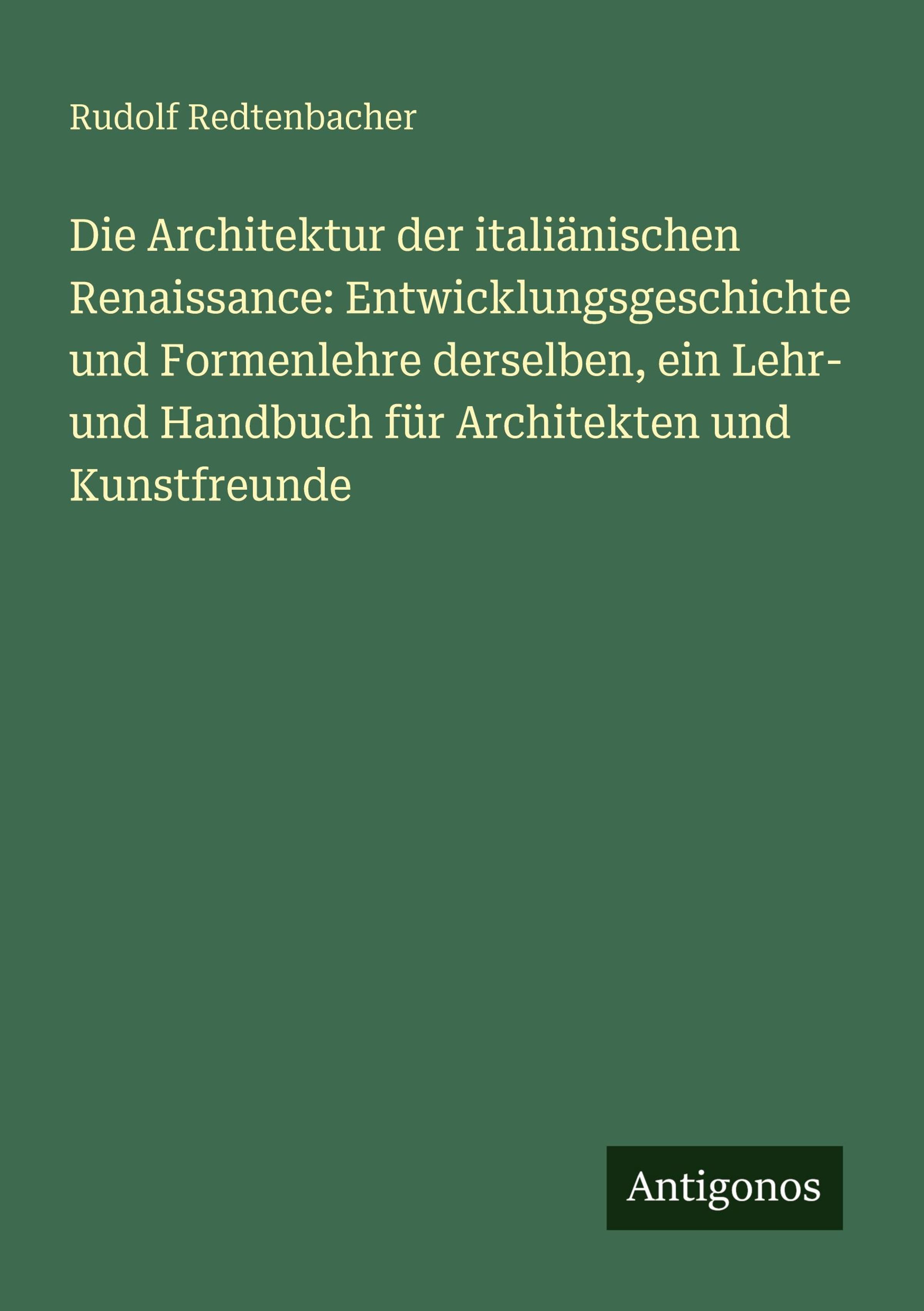 Rudolf Redtenbacher: Die Architektur der italiänischen Renaissance: Entwicklungsgeschichte und Formenlehre..., Kartoniert / Broschiert