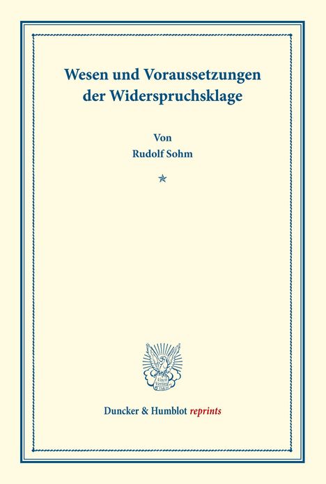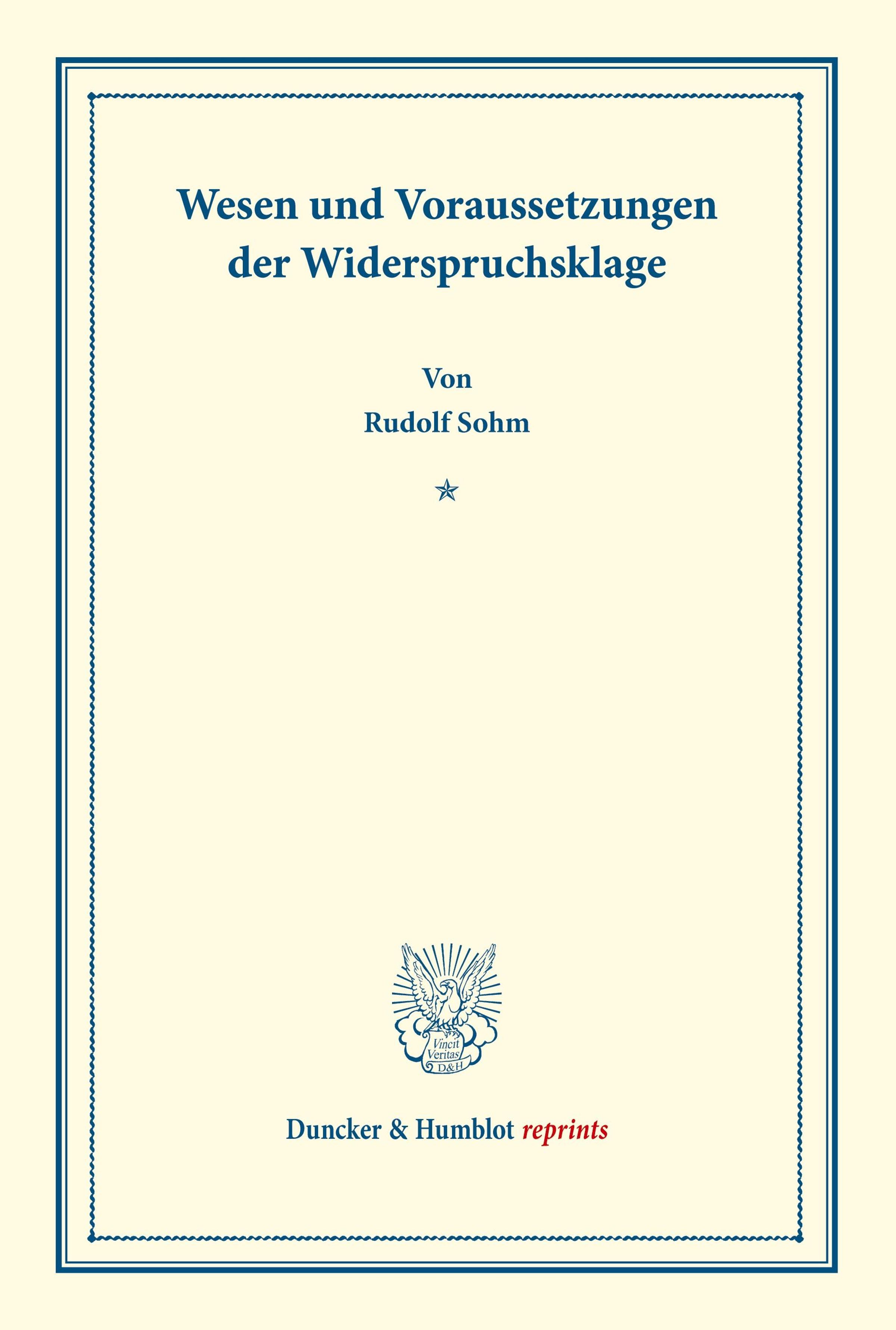 Rudolf Sohm: Wesen und Voraussetzungen der Widerspruchsklage., Kartoniert / Broschiert