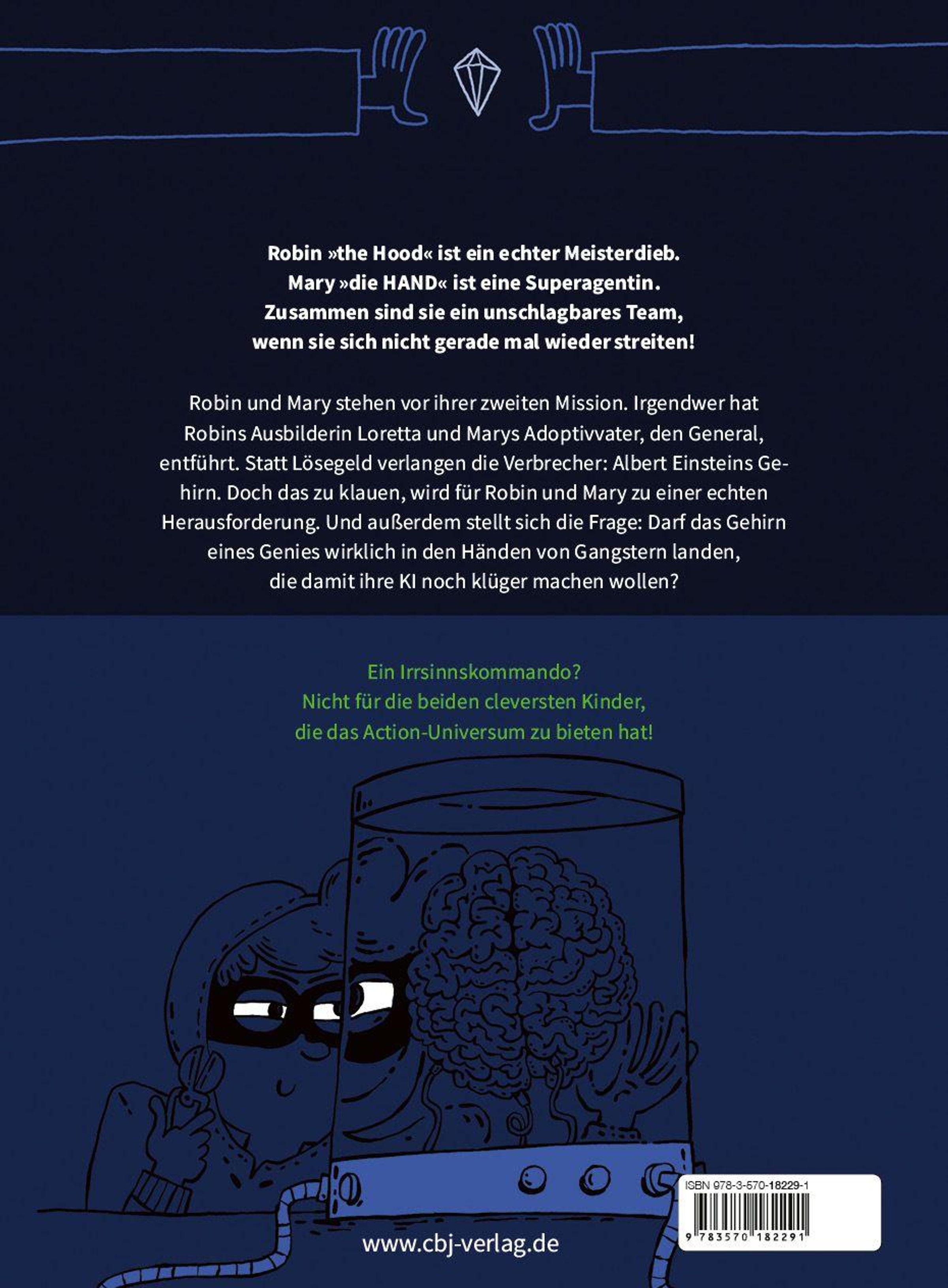 Robin und Mary stehen vor ihrer zweiten Mission. Irgendwer hat Robins Ausbilderin Loretta und Marys Adoptiv-Vater, den General, entführt. Statt Lösegeld verlangen die Verbrecher: Albert Einsteins Gehirn. Doch das zu klauen, wird für Robin und Mary zu einer echten Herausforderung. Und außerdem stellt sich die Frage: Darf das Gehirn eines Genies wirklich in den Händen von Gangstern landen, die damit ihre KI noch klüger machen wollen?