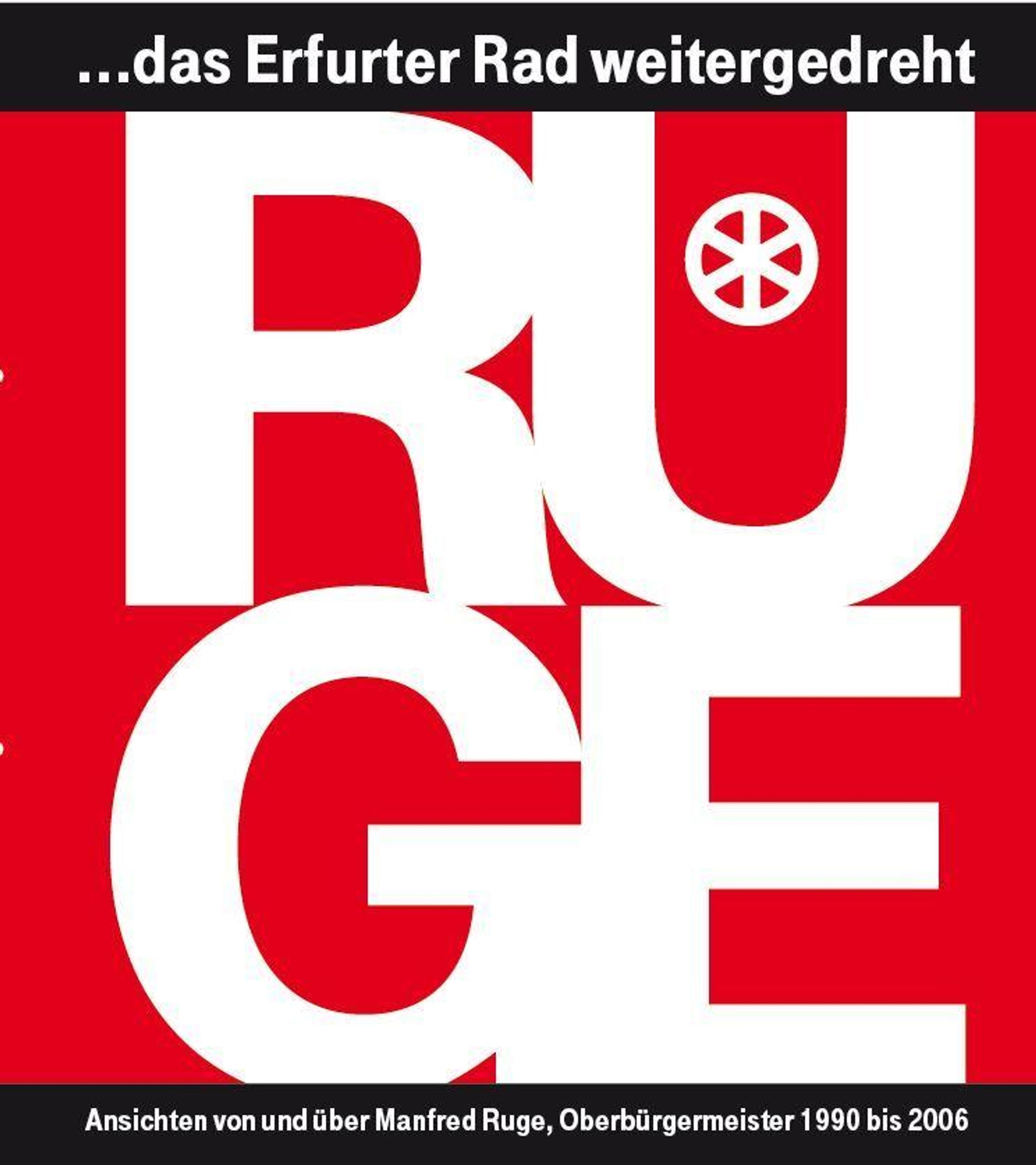 Text: „…das Erfurter Rad weitergedreht“ und „Ansichten von und über Manfred Ruge, Oberbürgermeister 1990 bis 2006“.