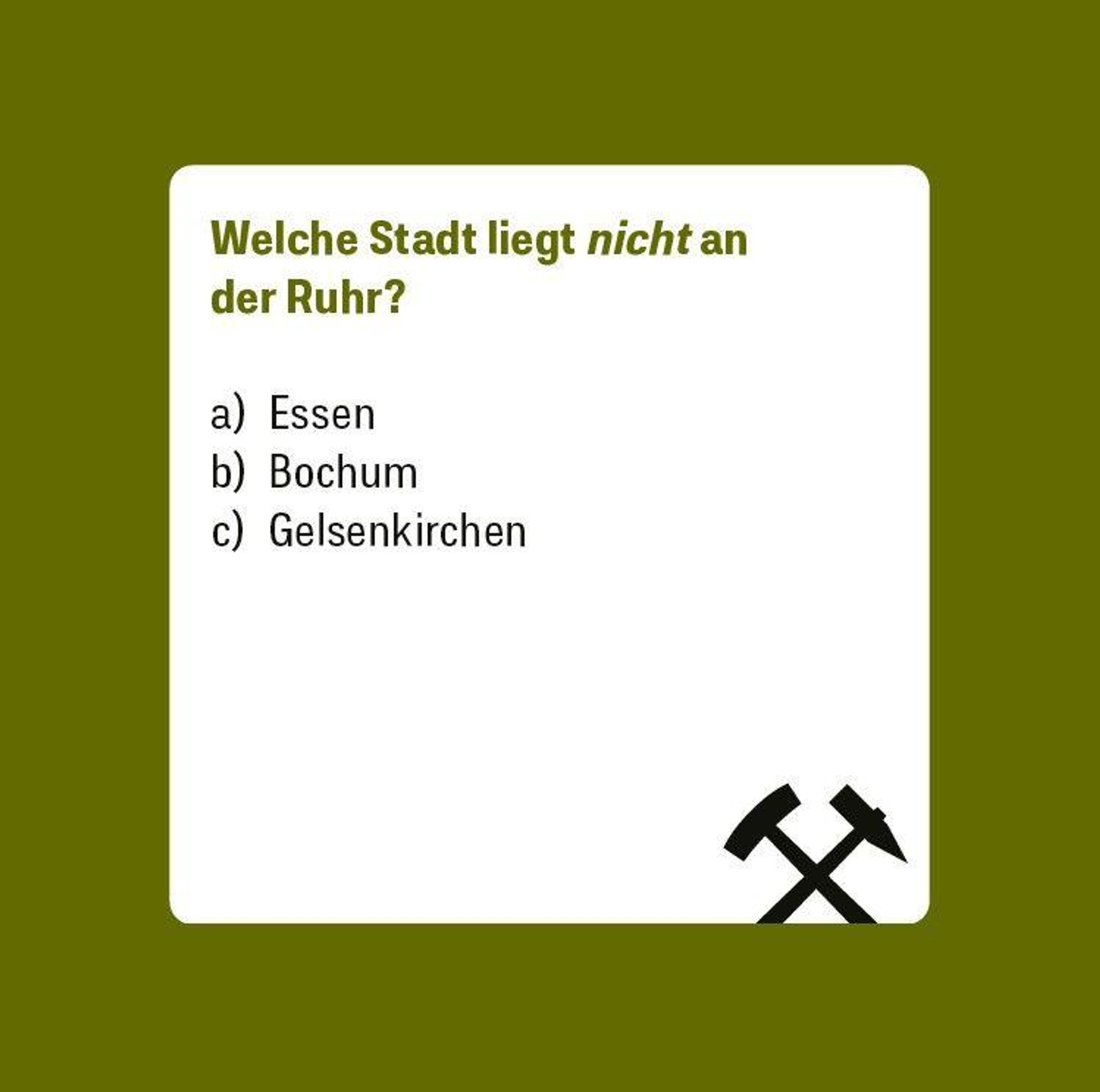 Das Ruhrpott-Quiz ist der perfekte Begleiter für alle, die das Revier im Herzen tragen -- ob gebürtige Pottkinder oder neugierige Entdecker: innen. In 66 unterhaltsamen Fragen dreht sich alles um die Geschichte, Sprache, Kultur und Eigenheiten der Region zwischen Zechen, Schrebergärten und Stadionwurst.