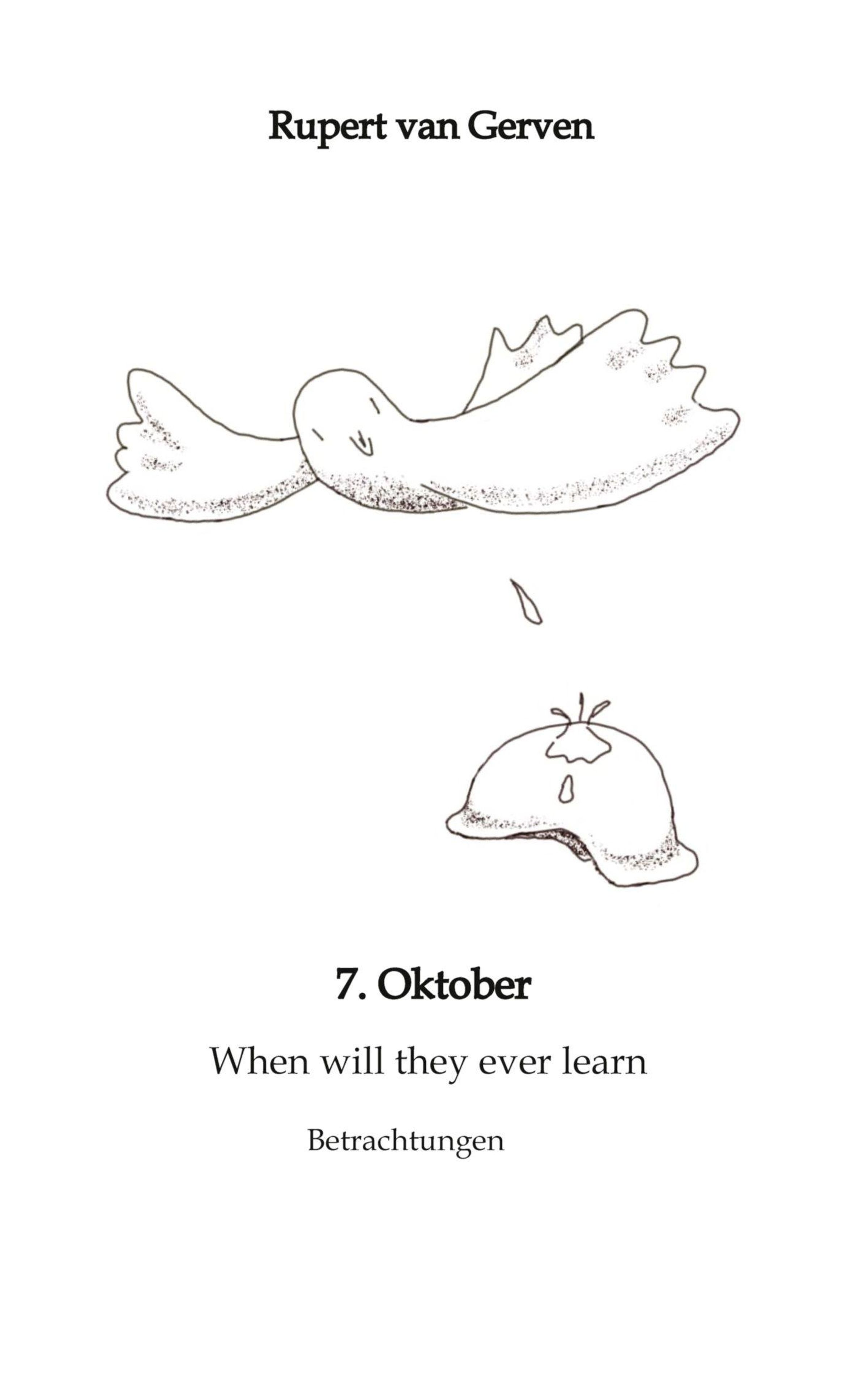 "Rupert van Gerven. 7. Oktober. When will they ever learn. Betrachtungen." Illustration: Eine fliegende Taube und ein umgestürzter Hut., Buch