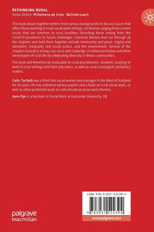 - Introduction.- PART 1 - STIGMA¿.-2. Social Work at Home - Dual Relationships and Challenges for the Worker, Gillian Ritch.- 3. Being an Outsider in the Place Where I Belong, John Sturgeon.- 4. Alcohol and Drug Use Disorders in Rural Scotland, Heather Still.- 5. Rural Social Work with Romani, Traveller, Show and Boater People, Allison Hulmes.- PART 2 - ENVIRONMENT.- 6. Technology and Remoteness, Jane Pye.- 7. Re-imagining Rural Social Work During the Time of Covid-19 and a Climate Crisis, Lena Dominelli.- 8. Farming, Nature and Our Relationships With The Land, Tina Laurie.- 9. Protecting children and young people: Creating a 'level playing field' for rural & isolated communities, Dr Sarah Nelson.- PART 3 - COMMUNITY.- 10. Rural Social Work and a Life Worth Living All My Days, Becky Squires.- 11. Trojan Mouse - Using Rural Space in Social Work, Karin Eyben and Carla McLaughlin.- 12. Patriarchy, Masculinities and Gender-Based Violence in Rural Communities, Colin Turbett.- 13. Conclusion: Where Now for Rural Social Work.
