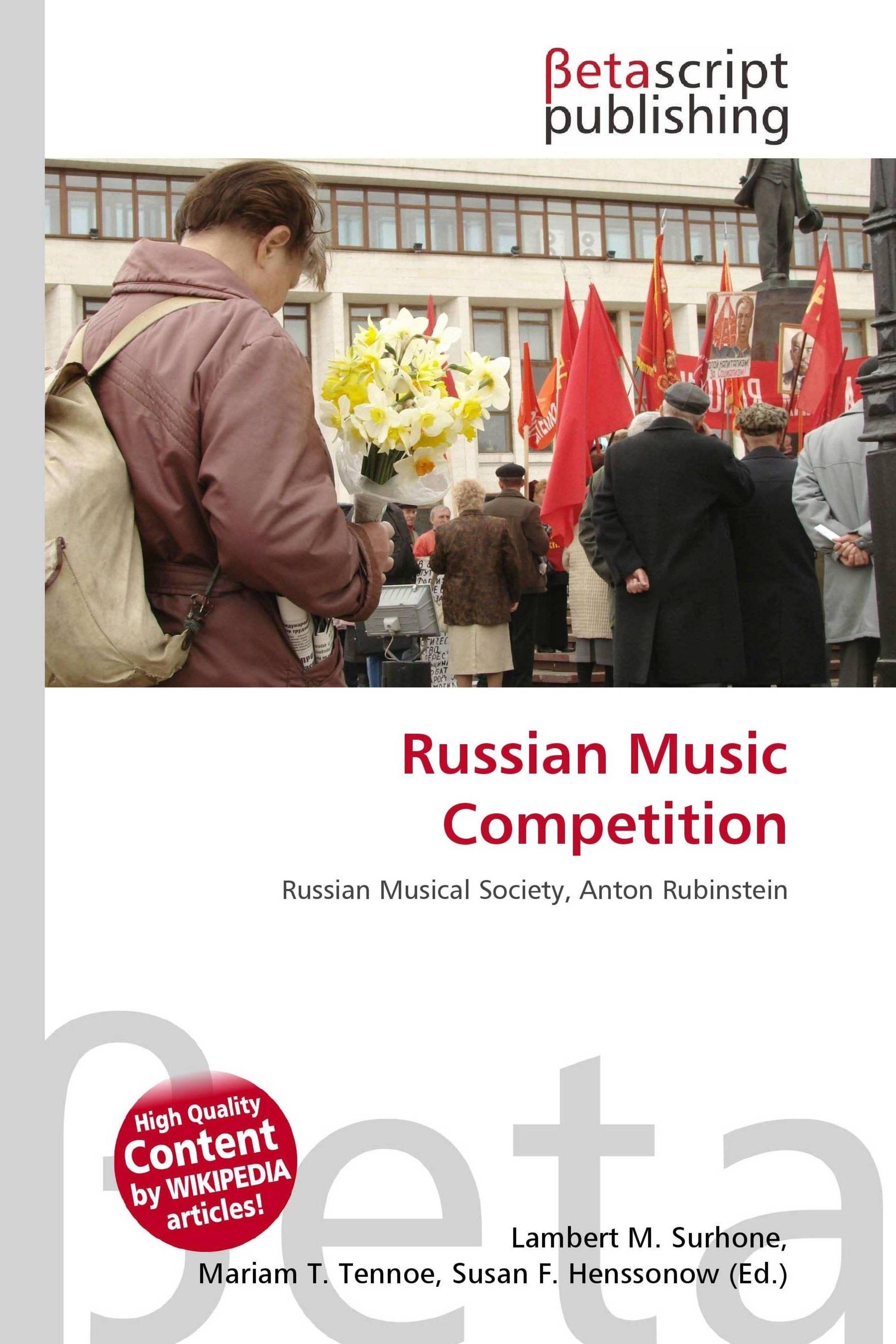 Please note that the content of this book primarily consists of articles available from Wikipedia or other free sources online. The International Russian Music Piano Competition (often referred to as The Russian Music Competition) is a piano competition established by Irina Prilipko-Morgan and her husband, Dan Morgan, in the spring of 2000. The competition is divided in to four categories: Young Musicians, Junior, Intermediate, and Advanced. The final category, Advanced, is staged at Le Petit Trianon theater or another within California, alongside professional musicians and a professional orchestra. The first final of the competition was held at the Appreciation Hall of Foothill College, Los Altos Hills in 2002. It involved 35 competitors, three jury members and a total of $500 prize money for the winner. Since its inception, the competition has significantly changed; seven jury members now judge the performances, give master classes, and present lectures to young pianists during the ten-day-long competition period.