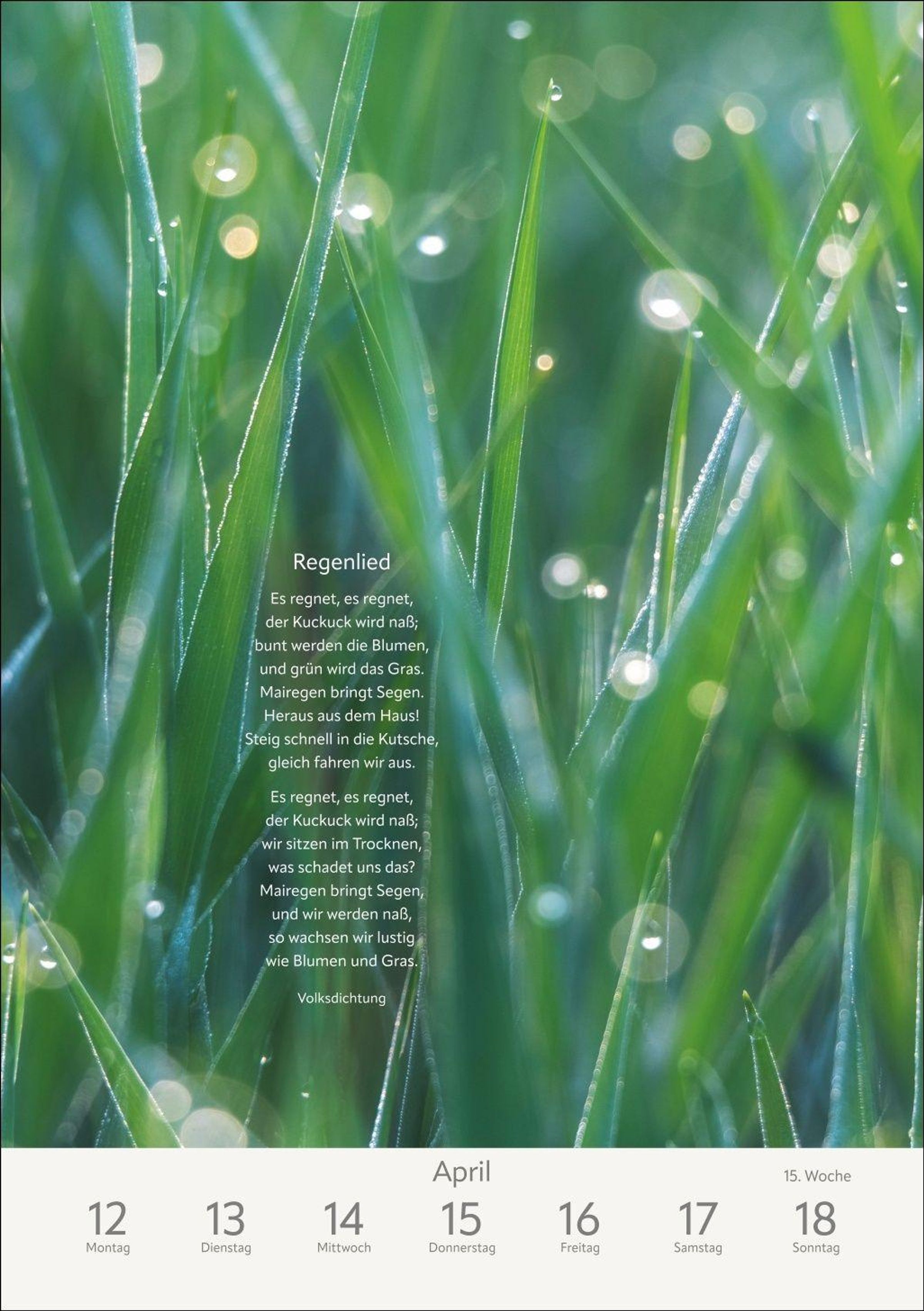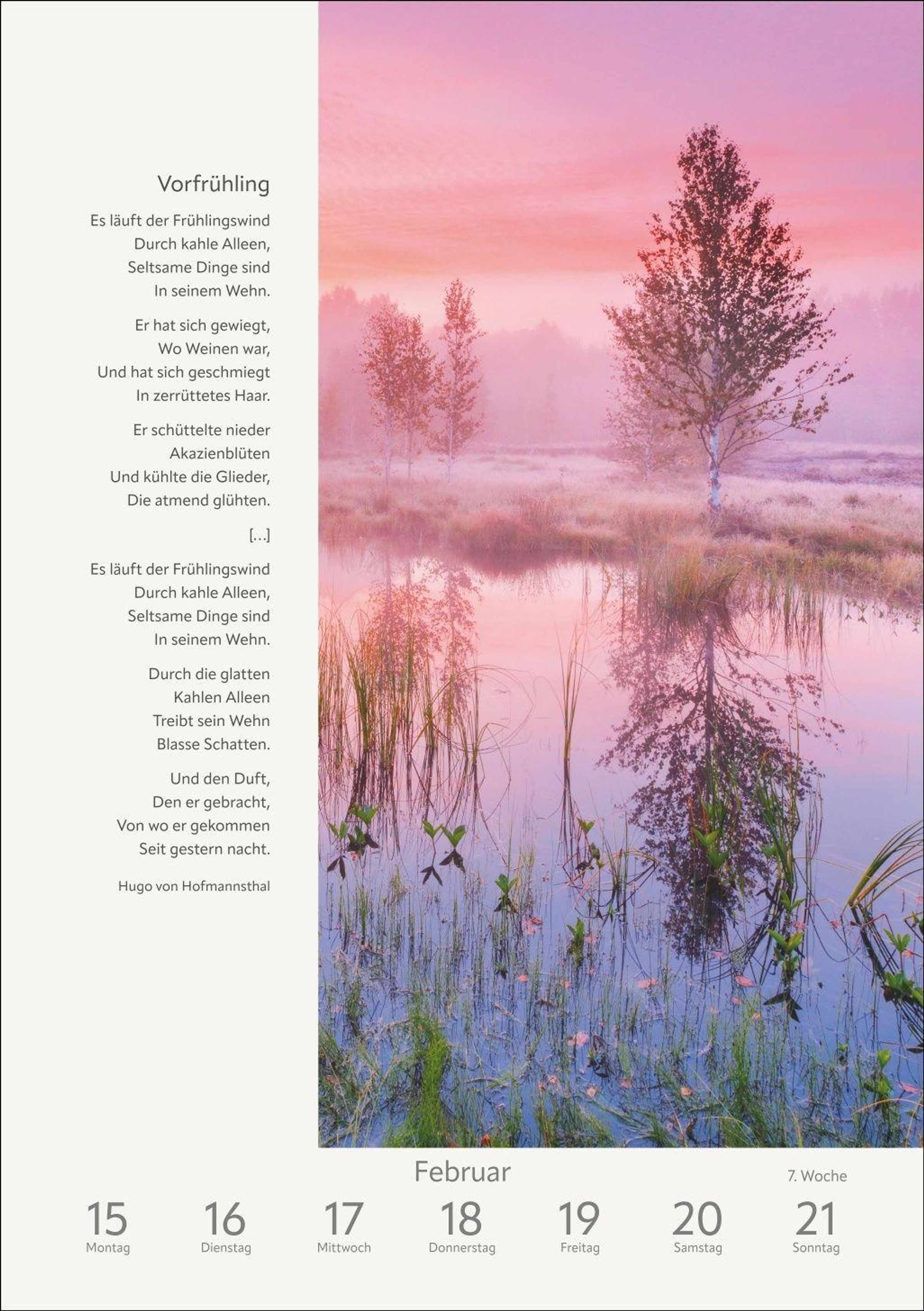 - Jede Woche neue Natur- und Landschaftsaufnahmen mit literarischen Zitaten in einem Foto-Wandkalender