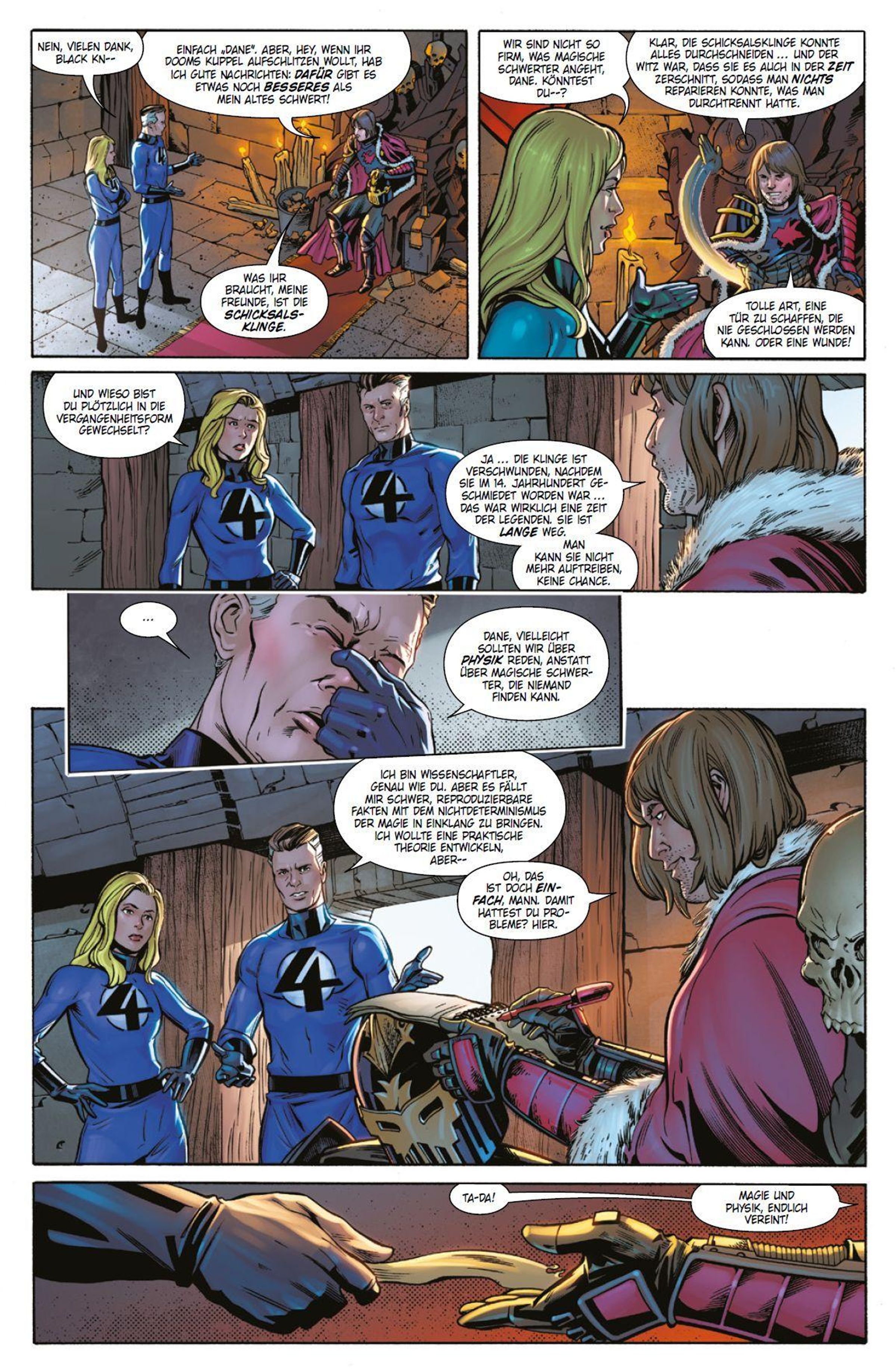 IM ZEICHEN VON DOOM! Seit Dr. Doom den Titel Oberster Zauberer der Erde trägt, hat er sein Reich Latveria von der Außenwelt abgeschottet. Während sich Mr. Fantastic auf die Konsequenzen vorbereitet, ist ihm sein Erzfeind einen Schritt voraus. Als sich Doom zum Herrscher der Welt ausruft und Ben Grimm ungefragt einen lang gehegten Wunsch erfüllt, läuft die Uhr für die Fantastic Four unaufhaltsam ab. Denn der vermeintliche Gefallen entpuppt sich als ein zynischer Albtraum, der Marvels Superheldenfamilie mit ihrem Ende konfrontiert.