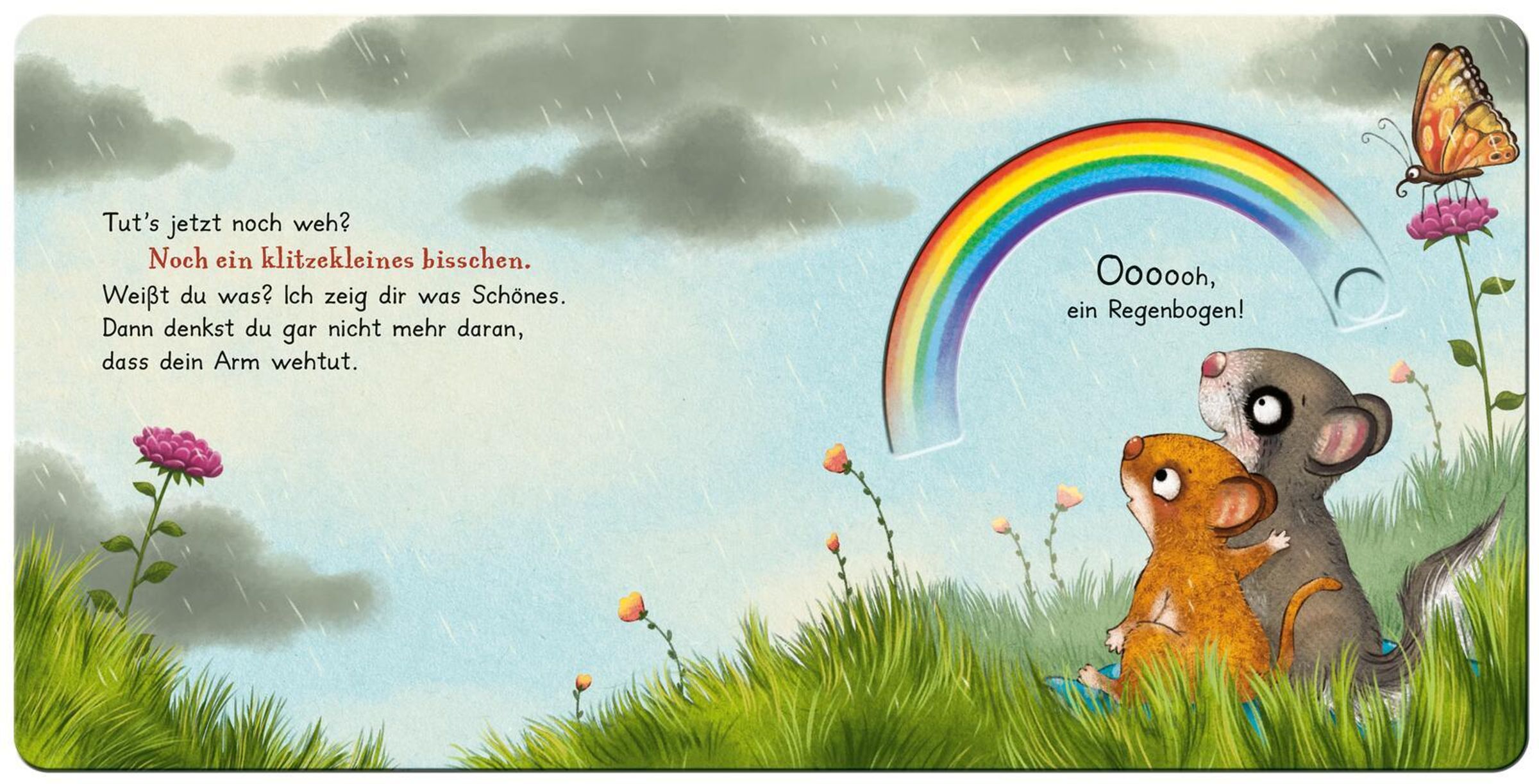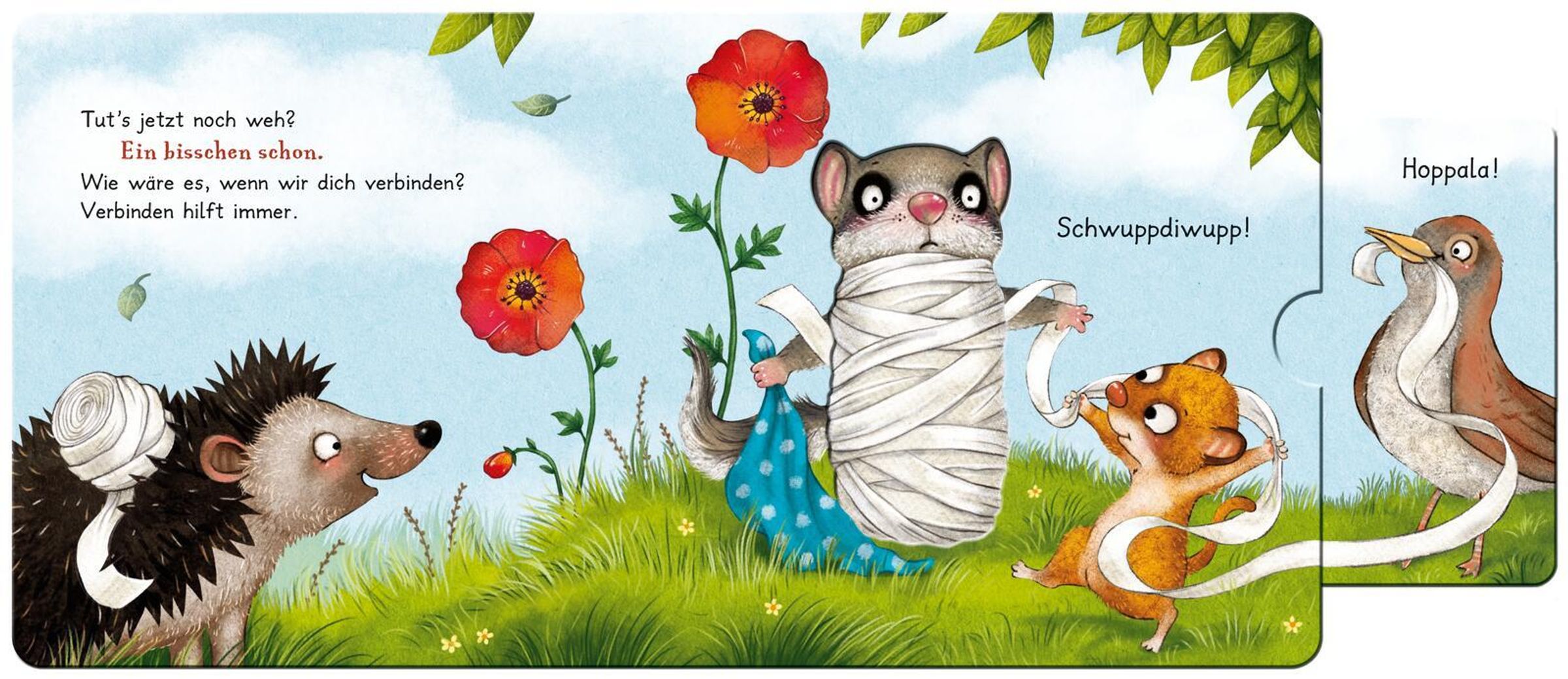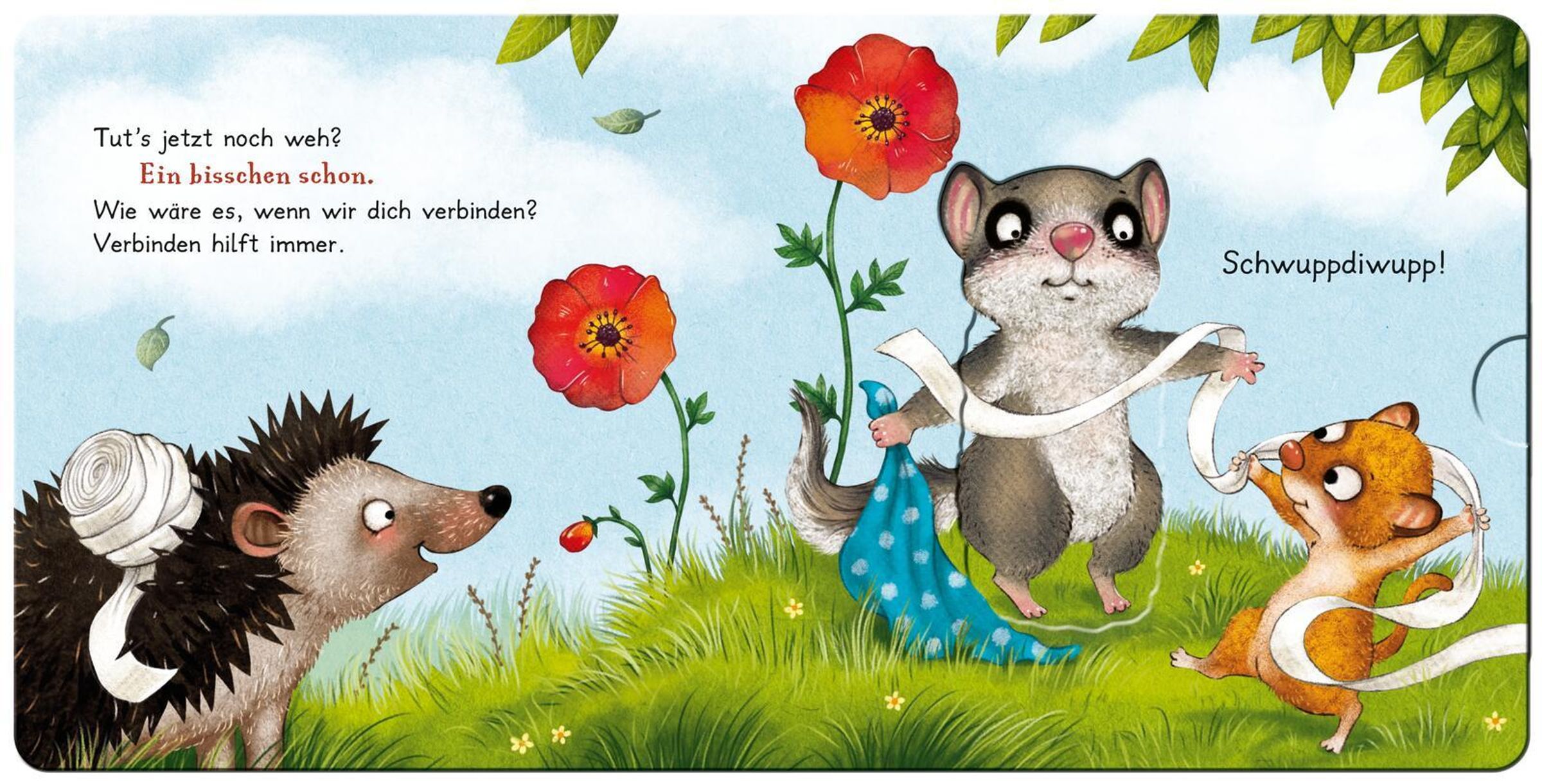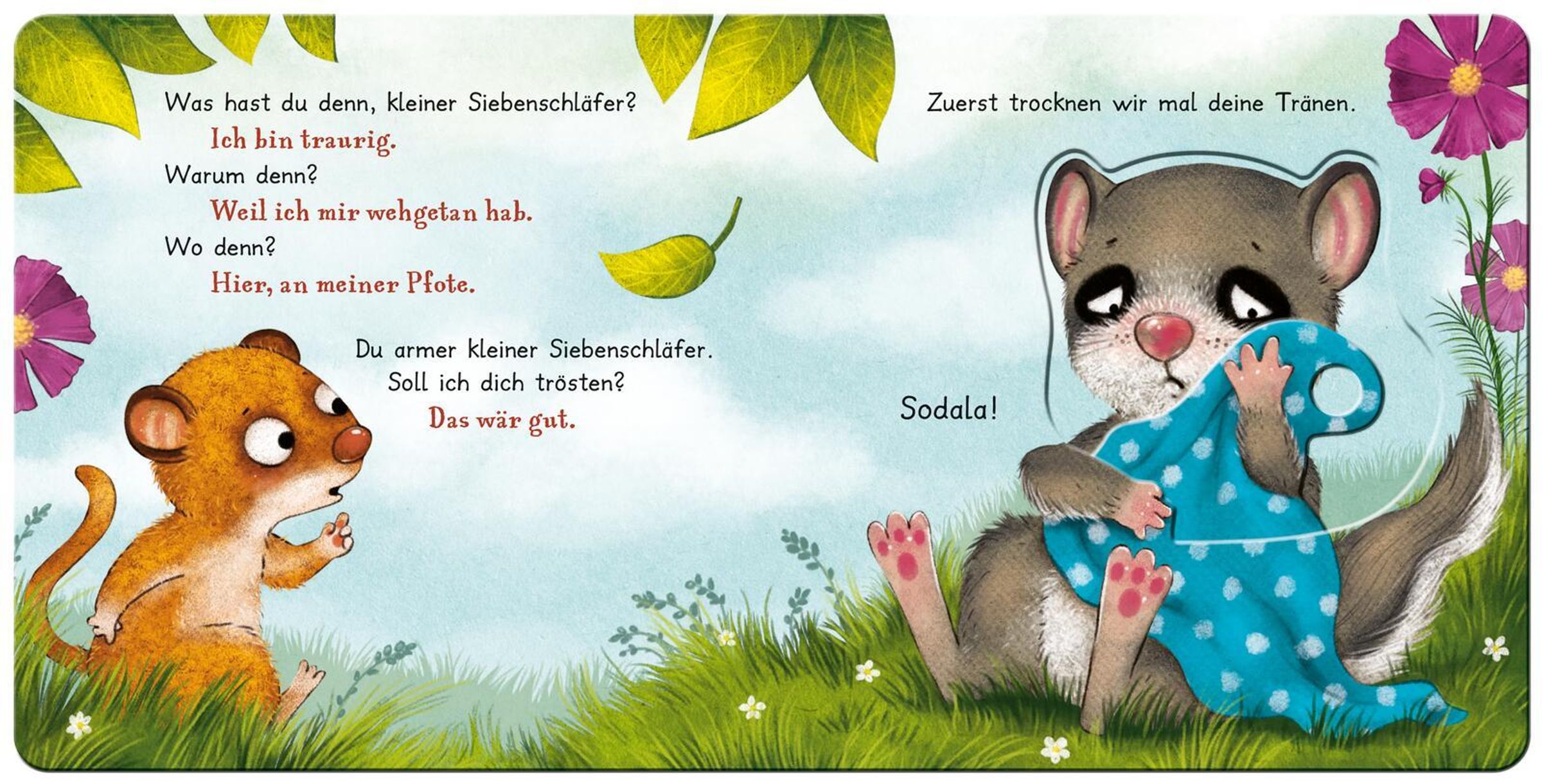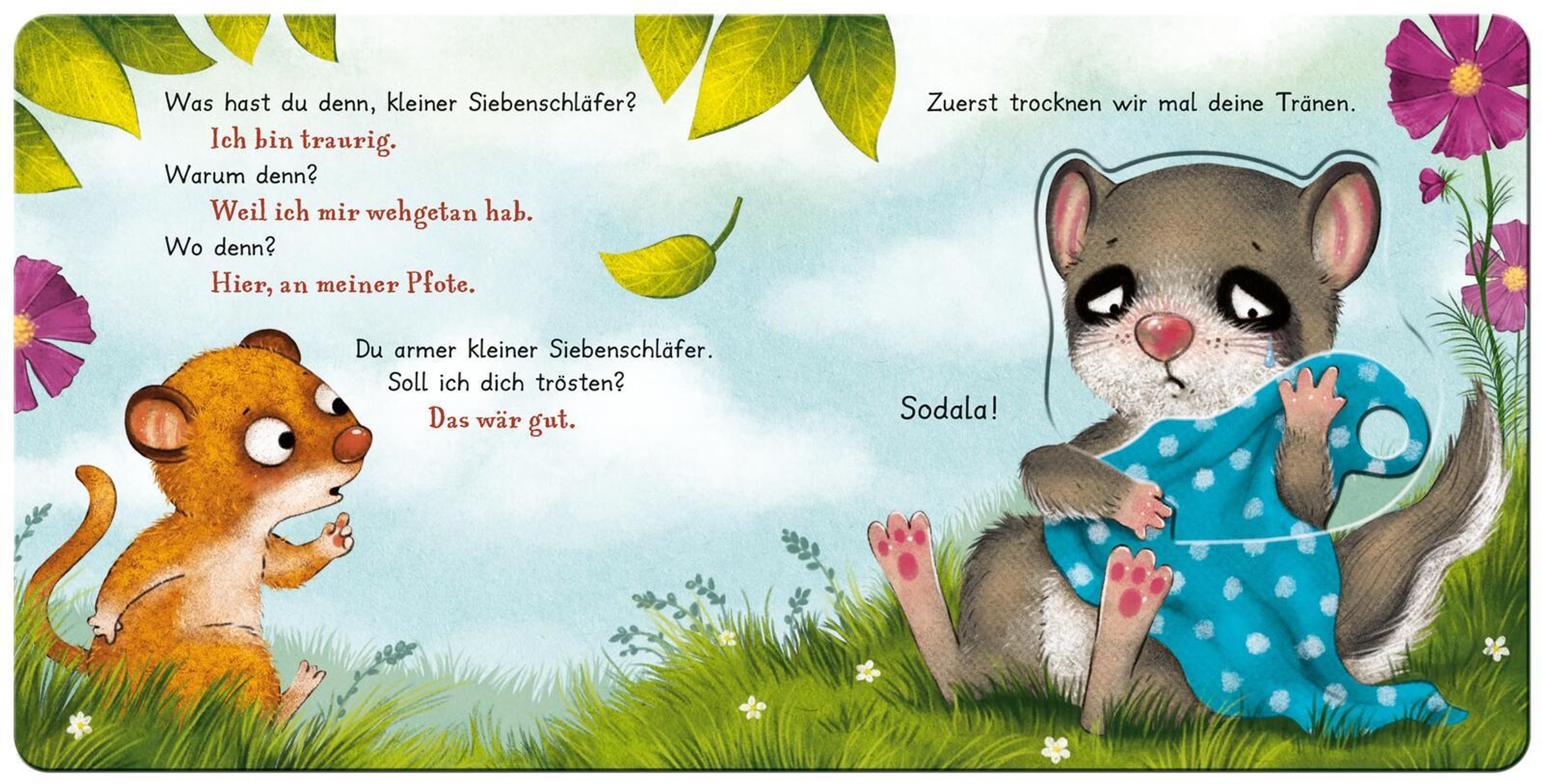 Der kleine Siebenschläfer braucht Trost - und die Kinder dürfen ihm helfen! In diesem liebevoll gestalteten Pappbilderbuch können die Kleinen den Siebenschläfer interaktiv begleiten: Tränen trocknen, das Pfötchen verbinden und gemeinsam wieder lachen. Sechs robuste Schiebeelemente laden zum Anfassen, Mitmachen und Mitfühlen ein und fördern ganz spielerisch Motorik, Empathie und Kreativität.