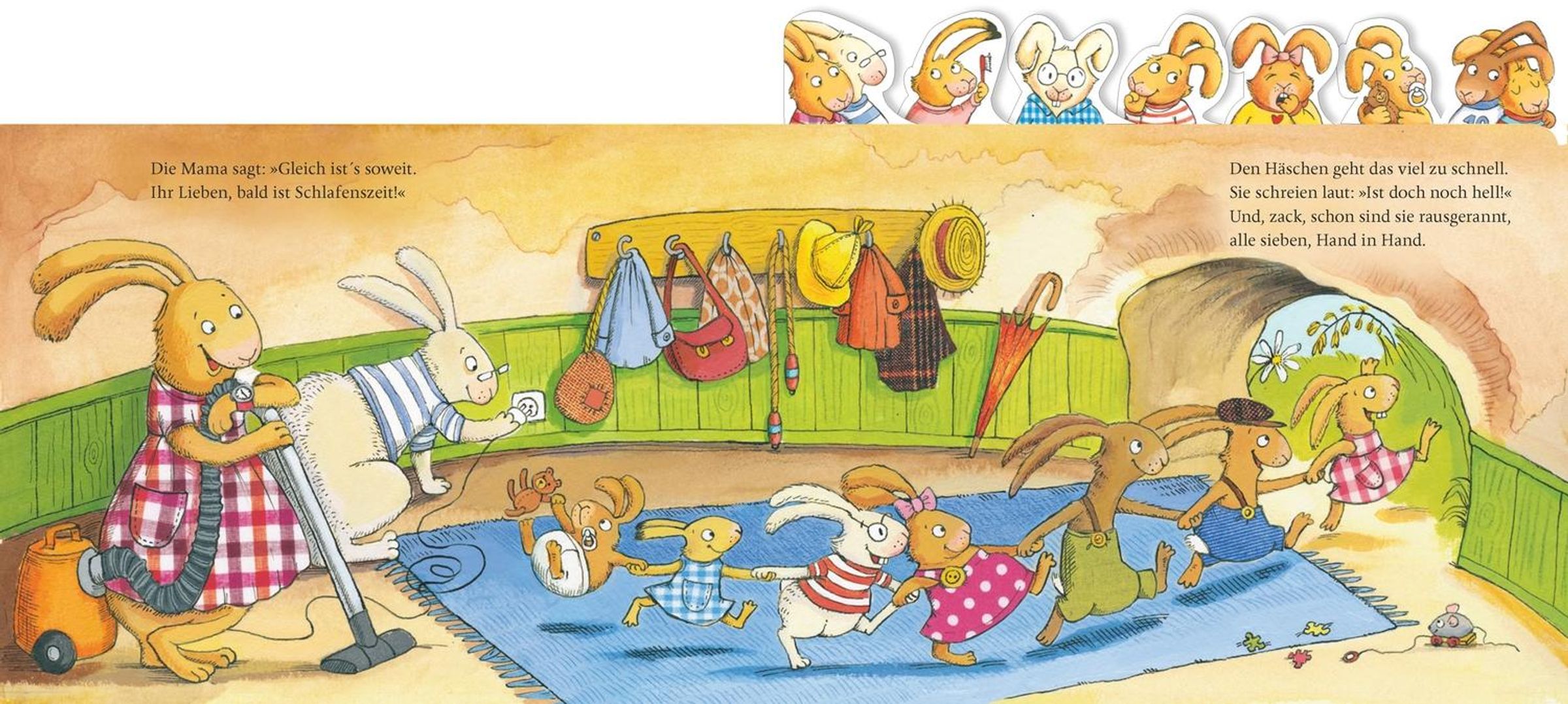 Wenn sieben müde kleine Hasen abends in ihr Bettchen rasen