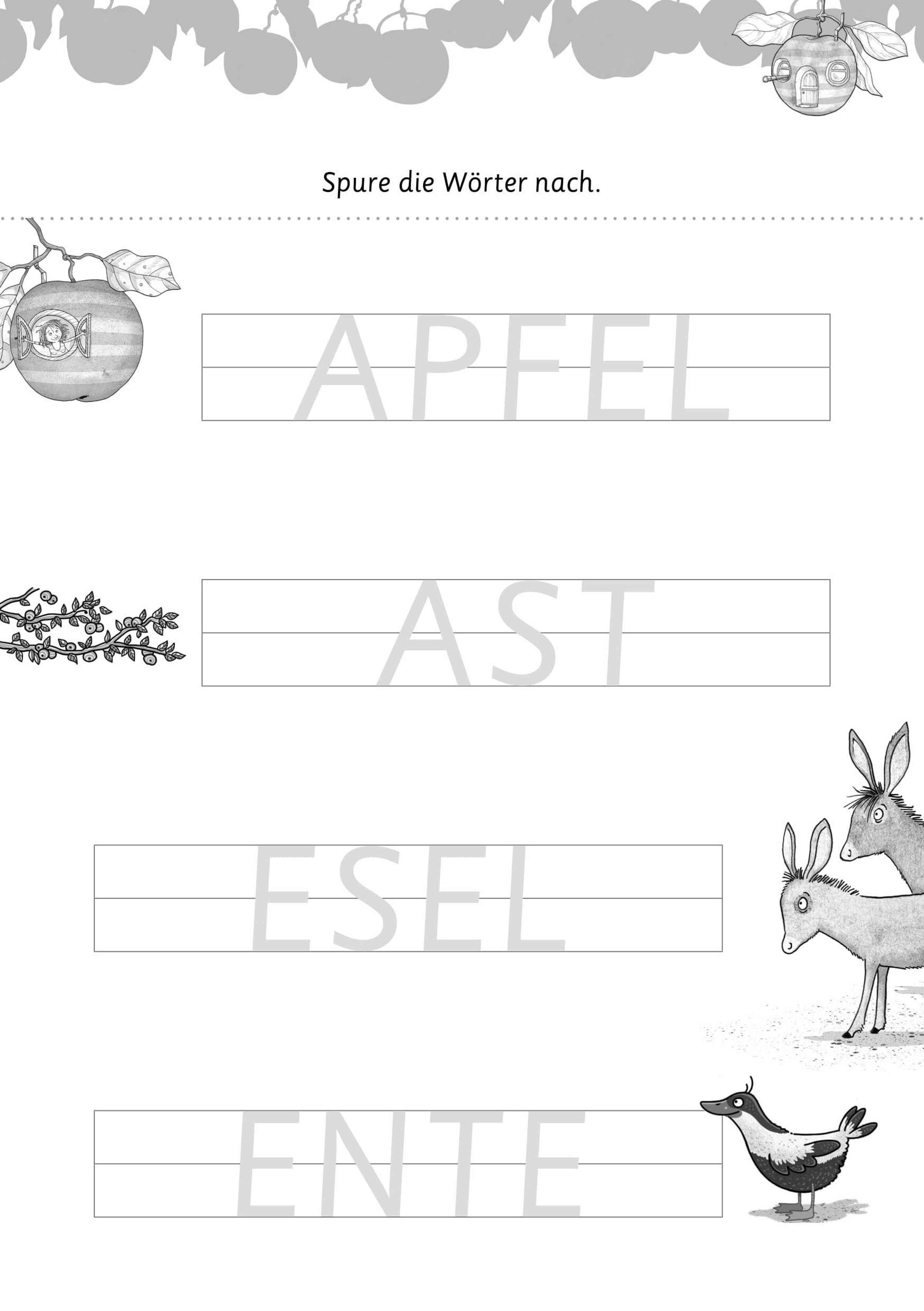 Dank Petronella perfekt auf die Schule vorbereitet sein: Ob Schwungübungen, Konzentrationsspiele, erste Buchstaben und Zahlen oder kleine Rätsel - dieser kurzweilige Vorschulblock wird dank Petronella und ihren Freunden zu einem Riesenspaß. Kinder ab 5 Jahren können unter anderem Apfelmännchen zählen, Bilderrätsel mit Hexentrank-Zutaten lösen, Äpfel zusammenrechnen und Irrwege durch den magischen Haspelwald bewältigen. Mit Fantasie, Witz und einer Prise Zauber werden wichtige Grundlagen fürs erste Schuljahr spielerisch vermittelt - perfekt für kleine Vorschulkinder mit großer Neugier!