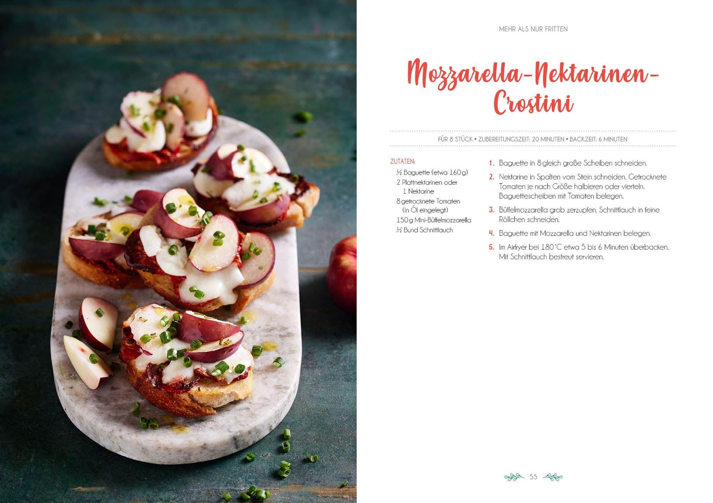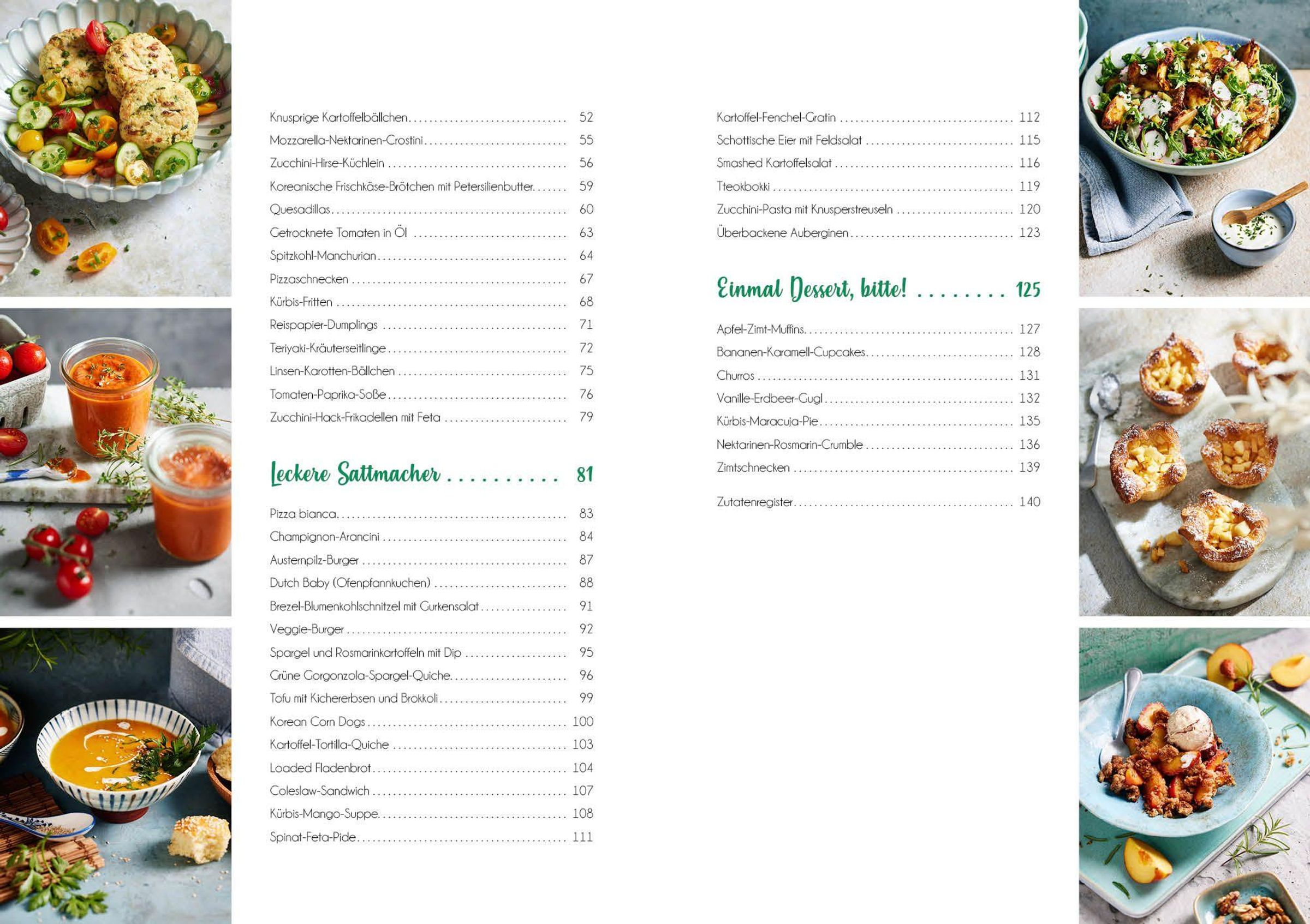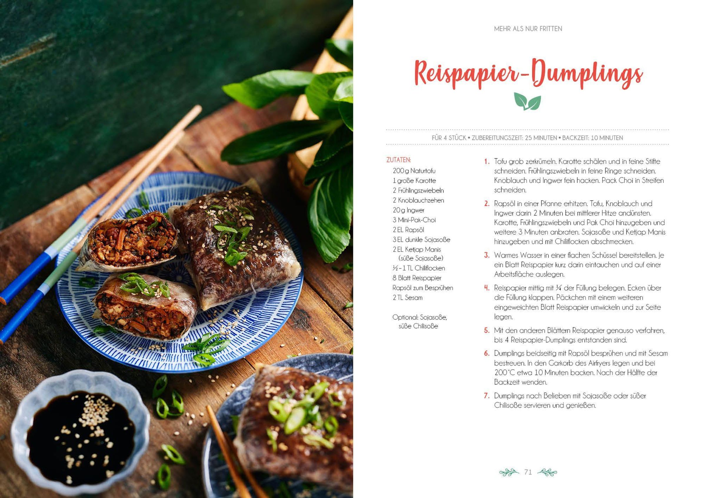 Knusprige Kürbis-Fritten oder herzhafte Pizza Bianca ohne Unmengen an Öl und Fett - mit der praktischen Heißluftfritteuse ist das kein Problem. Ein weiterer Vorteil gegenüber herkömmlichen Backöfen ist der geringere Energieverbrauch: Airfryer brauchen im Vergleich wenig bis keine Aufheizzeit und haben dadurch insgesamt eine kürzere Zubereitungszeit. Dieses Airfryer-Kochbuch ist perfekt für Vegetarier*innen geeignet und enthält 60 kreative und abwechslungsreiche Rezeptideen für Frühstück, Mittag- und Abendessen sowie Snacks und Süßes für zwischendurch. Mit saftigen Veggie-Corn-Dogs, erfrischendem Auberginen-Limetten-Dip, leckeren Bananen-Erdnuss-Cupcakes und vielem mehr begeistern Sie nicht nur Familie und Freunde, sondern alle, die sich gesund und fleischlos ernähren und dennoch nicht auf Geschmack verzichten wollen. Tipps und Tricks zum Umgang mit der Heißluftfritteuse sowie leicht verständliche Anleitungen runden die Rezeptsammlung perfekt ab und erleichtern auch Anfänger*innen den Einstieg. So wird fettreduziertes, kalorienarmes und stromsparendes Kochen wirklich einfach!