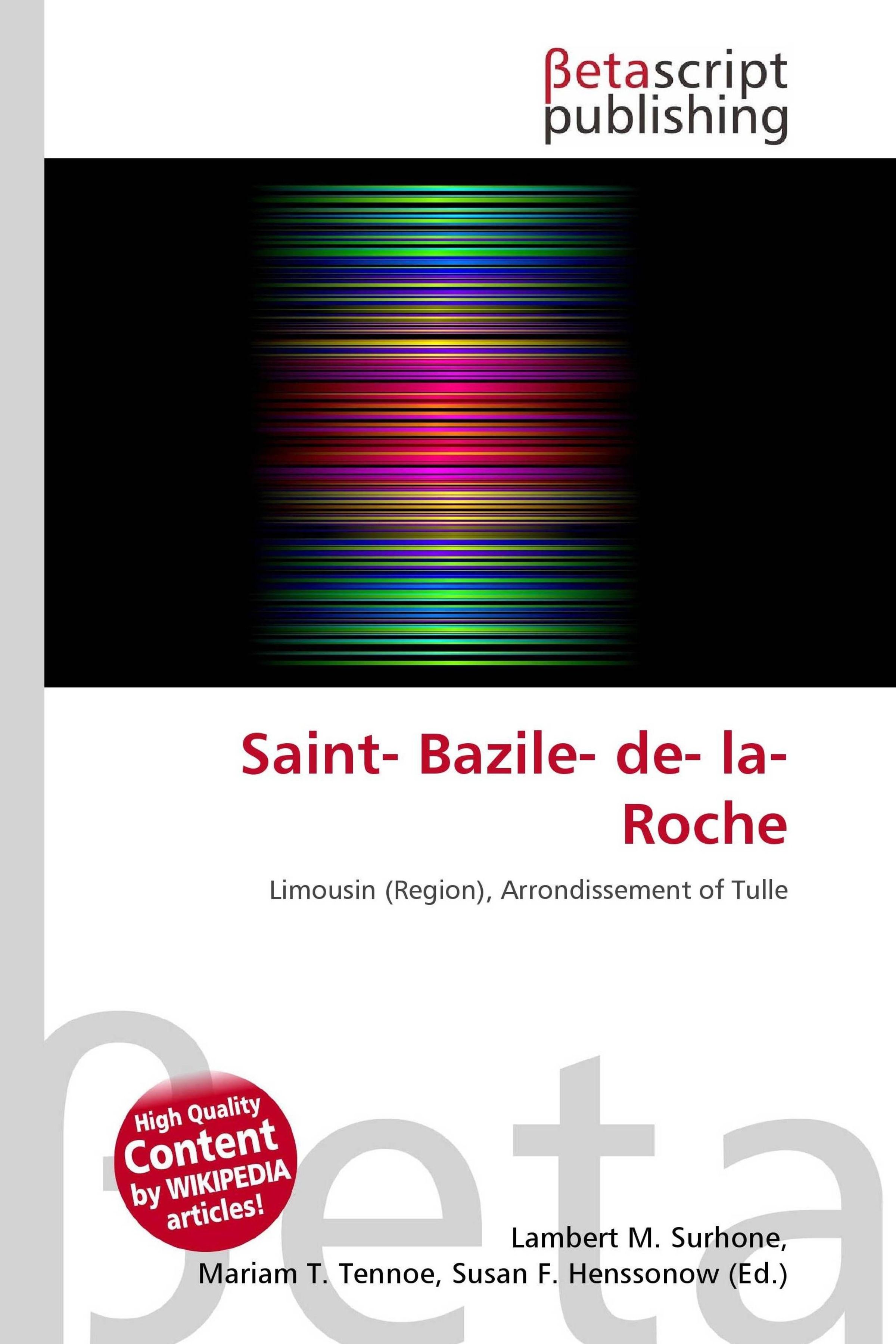 Text: "Saint-Bazile-de-la-Roche", "Limousin (Region), Arrondissement of Tulle". Logo: "Betascript Publishing". Bunte horizontale Streifen., Buch