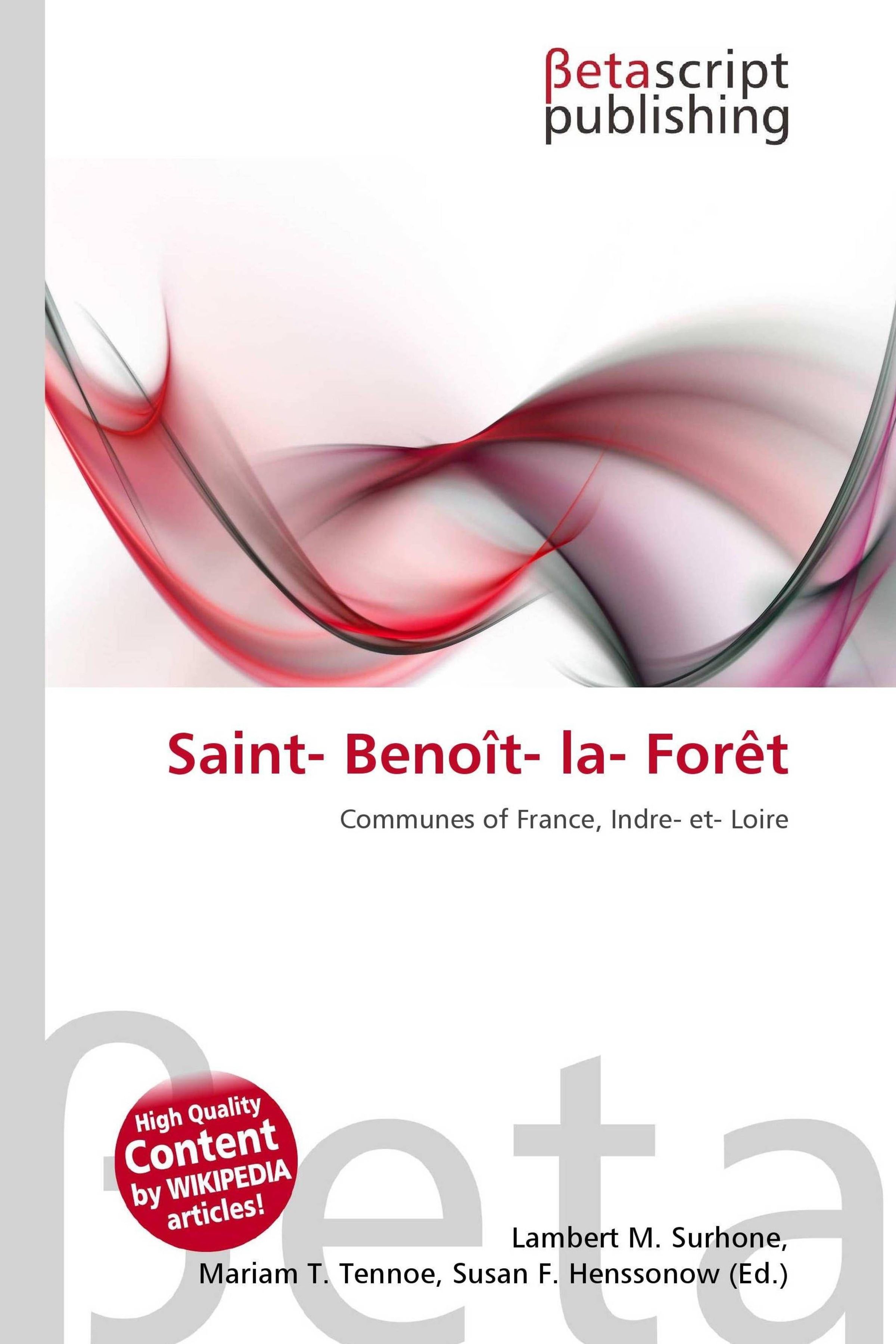 Please note that the content of this book primarily consists of articles available from Wikipedia or other free sources online. Saint-Benoît-la-Forêt is a commune in the Indre-et-Loire department in central France. Indre-et-Loire is a department in west-central France named after the Indre and the Loire rivers. Indre-et-Loire is one of the original 83 départements created during the French Revolution on 4 March 1790. It was created from the former province of Touraine. Indre-et-Loire is part of the current region of Centre (Val de Loire) and is surrounded by the départements of Loir-et-Cher, Indre, Vienne, Maine-et-Loire, and Sarthe.