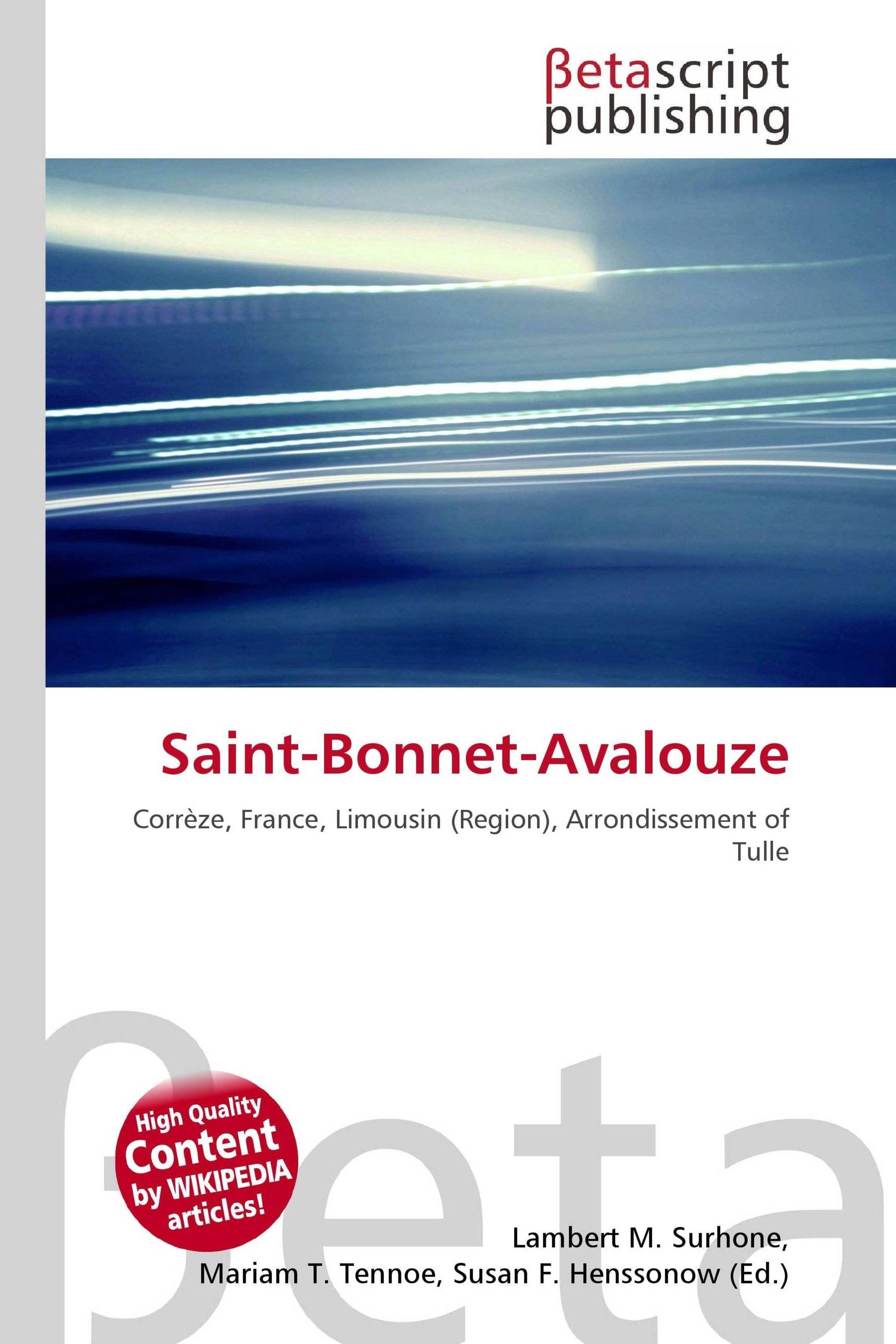 Please note that the content of this book primarily consists of articles available from Wikipedia or other free sources online. Saint-Bonnet-Avalouze is a commune in the Corrèze department in central France. Corrèze is one of the original 83 departments created during the French Revolution on March 4, 1790. It includes part of the former province of Limousin (the Bas-Limousin).The department is part of the current region of Limousin. It is surrounded by the department of Creuse, Haute-Vienne, Cantal, Puy-de-Dôme, Lot, and Dordogne. Tulle is the prefecture of Corrèze and Brive-la-Gaillarde the largest city.