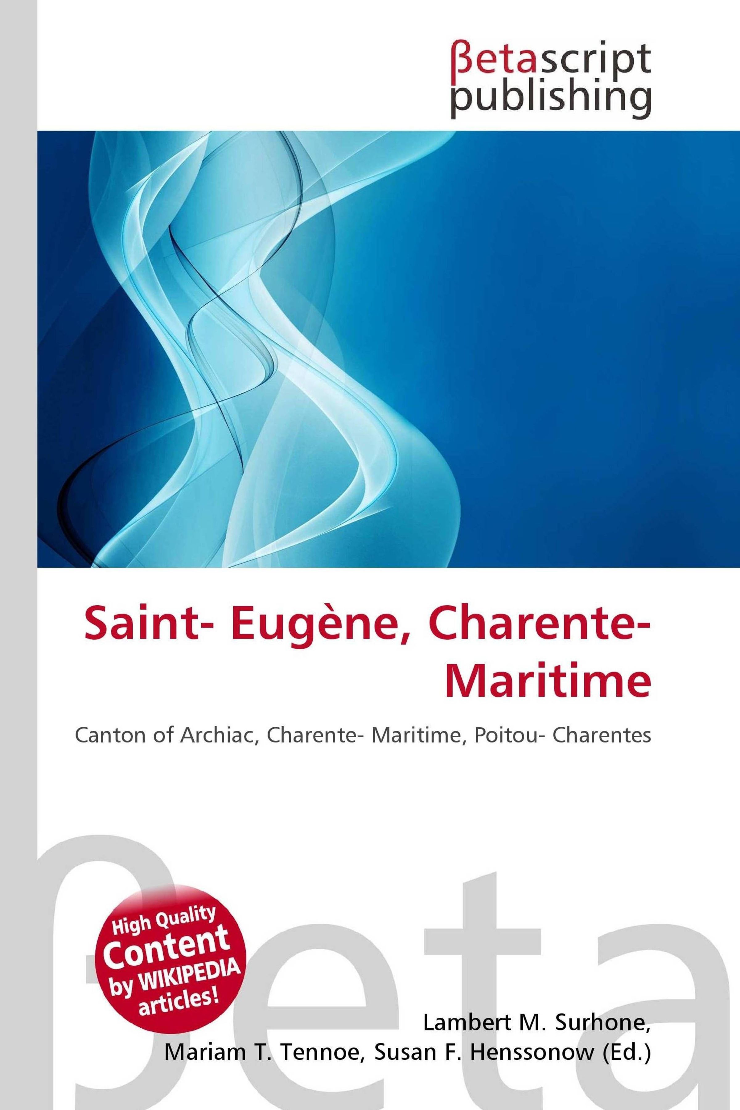 Please note that the content of this book primarily consists of articles available from Wikipedia or other free sources online. Saint-Eugène is a commune in the Canton of Archiac in the Charente-Maritime department in the Poitou-Charentes region in south-western France. The Canton of Archiac is a canton of the Charente-Maritime département, in France. its postcodes 17500 and 17520. The lowest point is 8 m at the commune of Celles, the highest point is at Saint-Eugène at 121 m, the average or the centre is 66 m. The leastly populated commune is Neulles with 139 and the most populated commune is Archiac with 864. The second mostly populated commune is Jarnac-Champagne with 727.