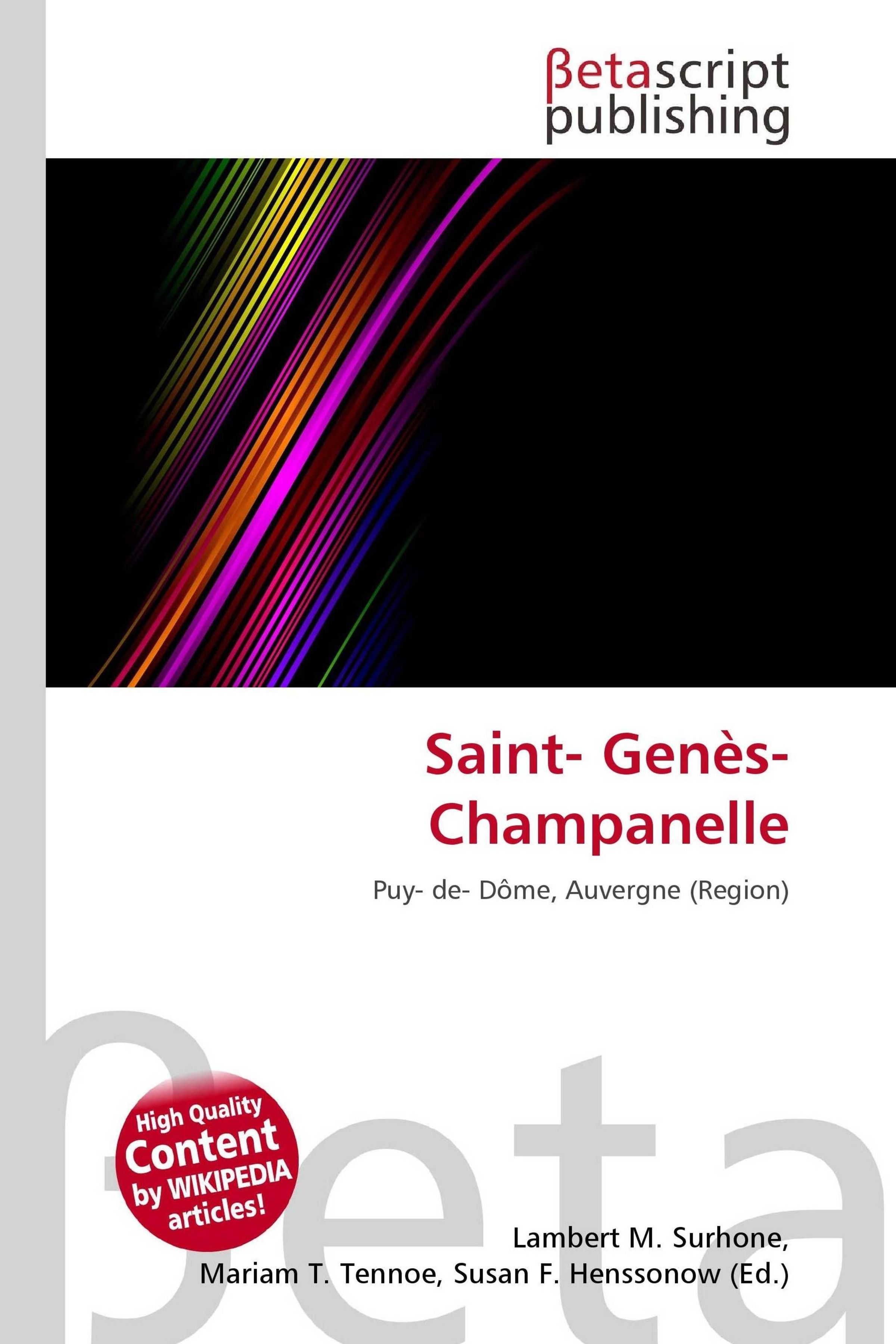 Please note that the content of this book primarily consists of articles available from Wikipedia or other free sources online. Saint-Genès-Champanelle is a commune in the Puy-de-Dôme department in Auvergne in central France. Puy-de-Dôme lo Puèi de Doma / lo Puèi Domat in the Auvergnat dialect of the Occitan language) is a department in the center of France named after the famous dormant volcano, the Puy-de-Dôme. Puy-de-Dôme is one of the original 83 departments created during the French Revolution on March 4, 1790. It was created from the former province of Auvergne. Originally, the department was to be called Mont d'Or ("golden mountain"), but this was judged not to be a very egalitarian name.