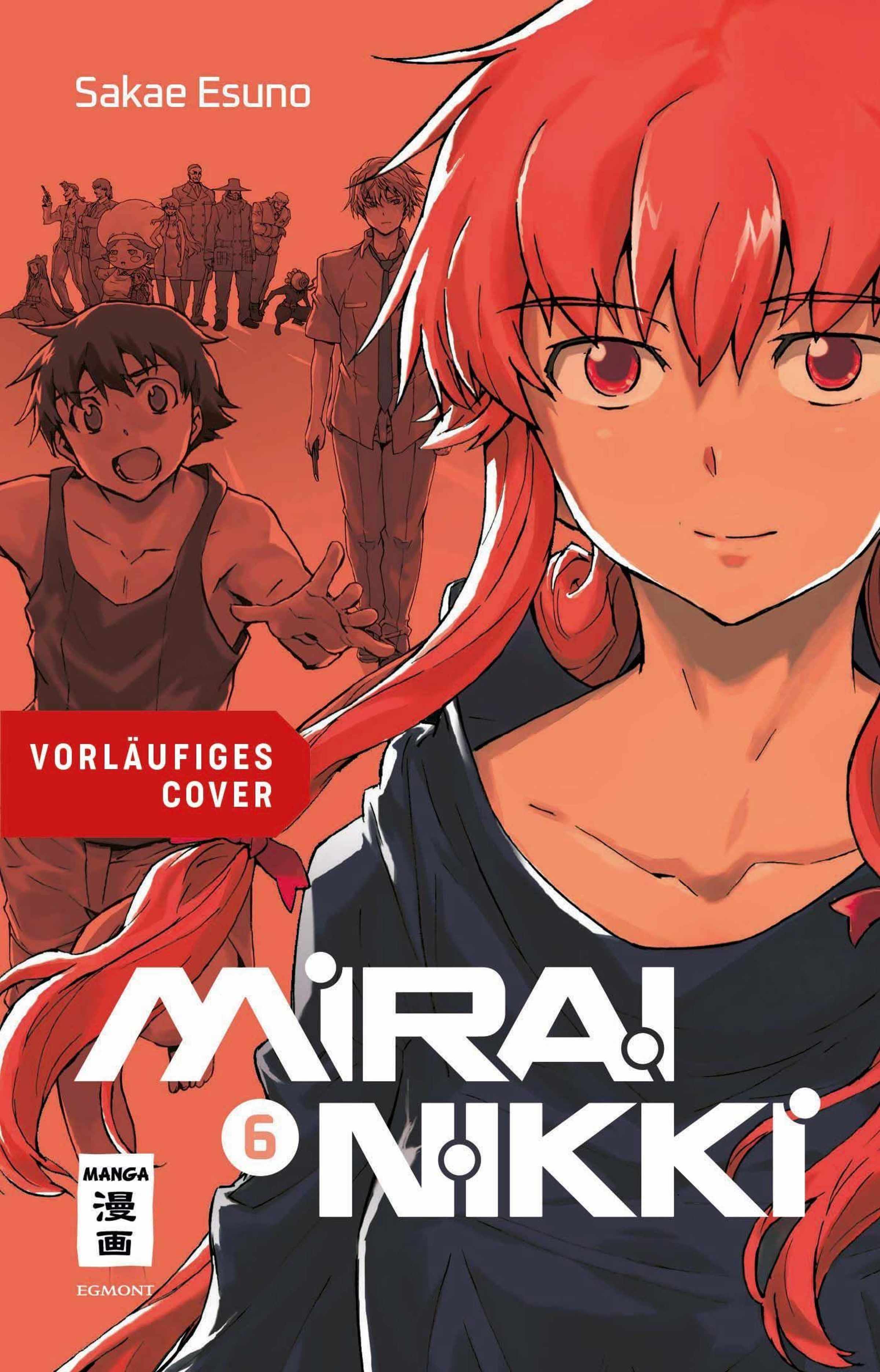 Text: "Vorläufiges Cover", "Mirai Nikki", "Sakae Esuno".