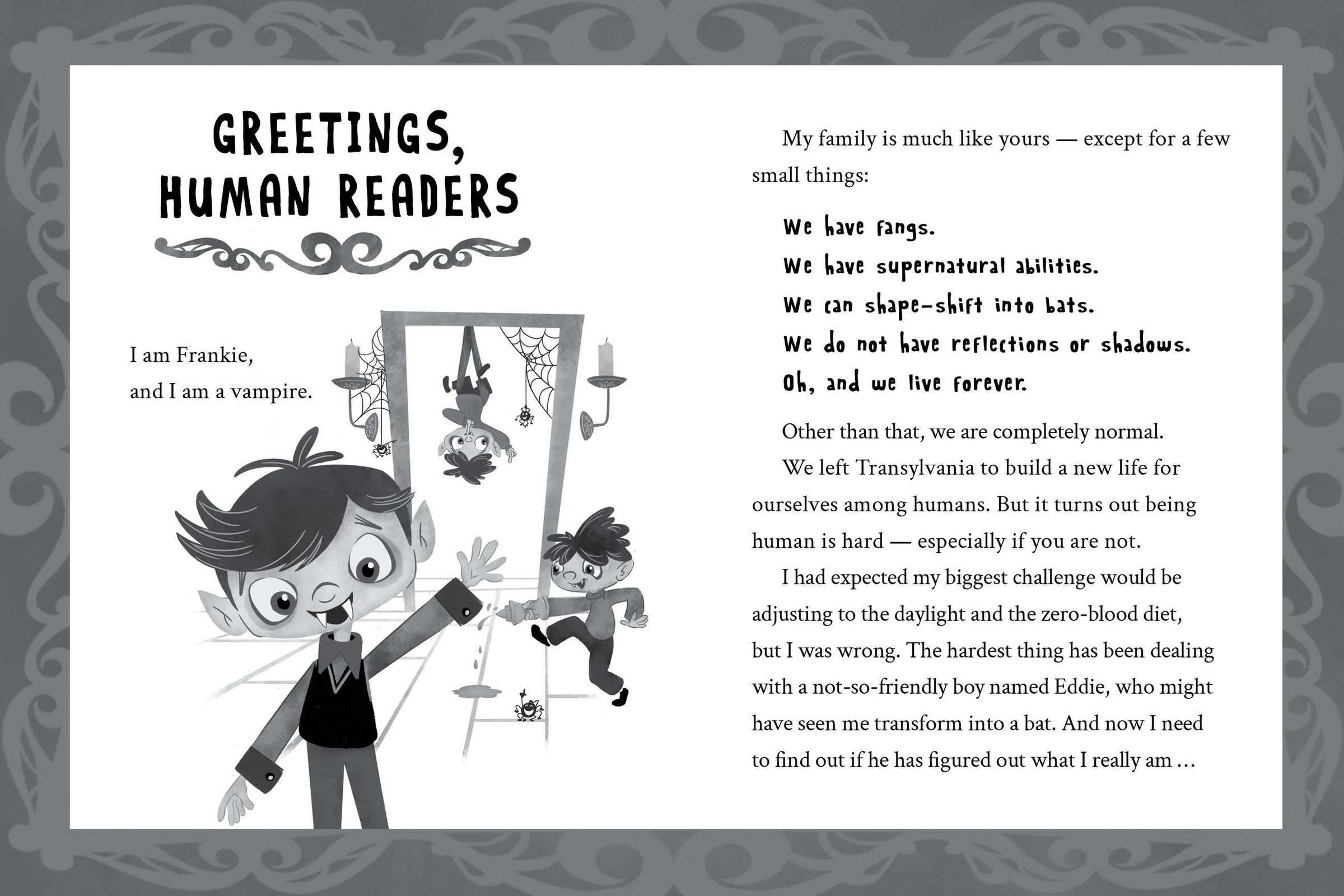A few months since leaving his vampire life behind him in Transylvania, Frankie is still learning the basics of acting human. But the good news is that Halloween is coming, and Frankie learns that on this treasured holiday, humans like to dress up in "scary" costumes, such as witches, zombies and ... VAMPIRES! In other words, this could be his family's chance to finally show their fangs and blend in just by being their true vampire selves. The only problem is a mean boy named Eddie, who might have uncovered Frankie's secret vampire identity. What if Eddie exposes him and his family? Would his friends ever forgive him? Would his family have to leave? Where would they go?