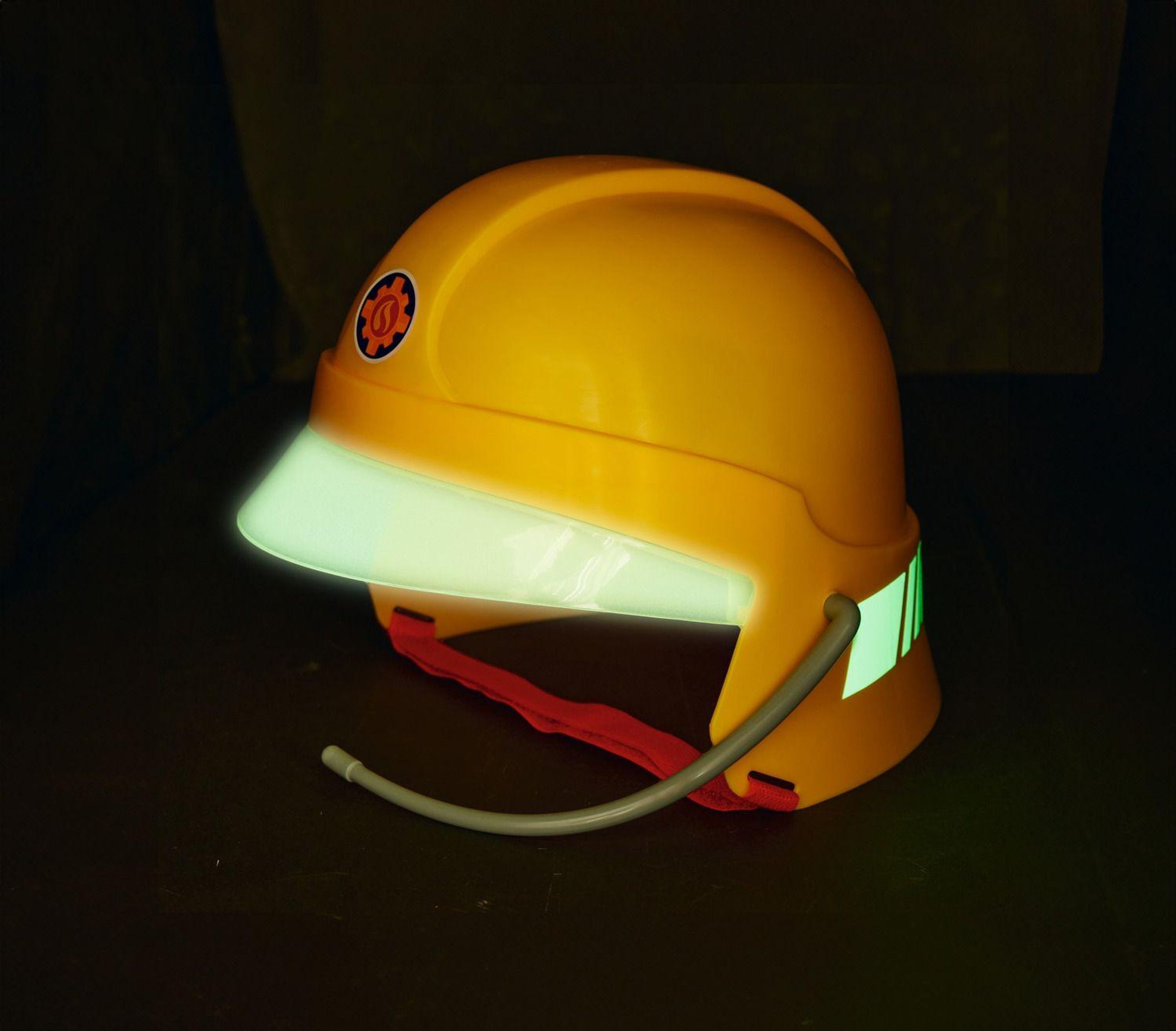 Für einen guten und sicheren Sitz ist der gelbe Helm im Inneren mit Schaumstoff-Pads ausgestattet. Ein verschließbares, rotes Band gibt ihm zusätzlichen Halt auf dem Kopf junger Feuerwehr-Freunde.