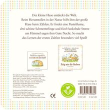 Der kleine Hase entdeckt die Welt. Beim Herumtollen in der Natur hilft ihm der große Hase beim Zählen. Er findet eine Pusteblume, drei Schmetterlinge und fünf Sterne am Himmel sagen ihm Gute Nacht. Mit dem liebevoll gestalteten Pappbilderbuch mit dem kleinen Hasen des Weltbestsellers macht das Zählen von 1 bis 5 besonders viel Spaß.