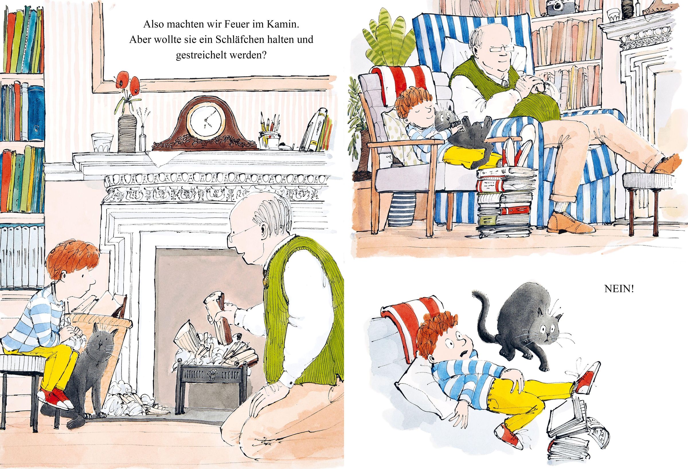 Der kleine Junge freut sich schon: Heute darf er mit seinem Opa auf eine Katze aufpassen. Das wird bestimmt ganz einfach! Man muss ja nur mit der Katze spielen, sie füttern und streicheln. Doch will die Katze mitmachen? Nein! Sie hat ihren eigenen Kopf, und dann schlüpft sie auch noch aus dem Fenster davon! Opa und Enkel stürzen hinterher - und geraten so mitten hinein in ihr neuestes, wildes Abenteuer.