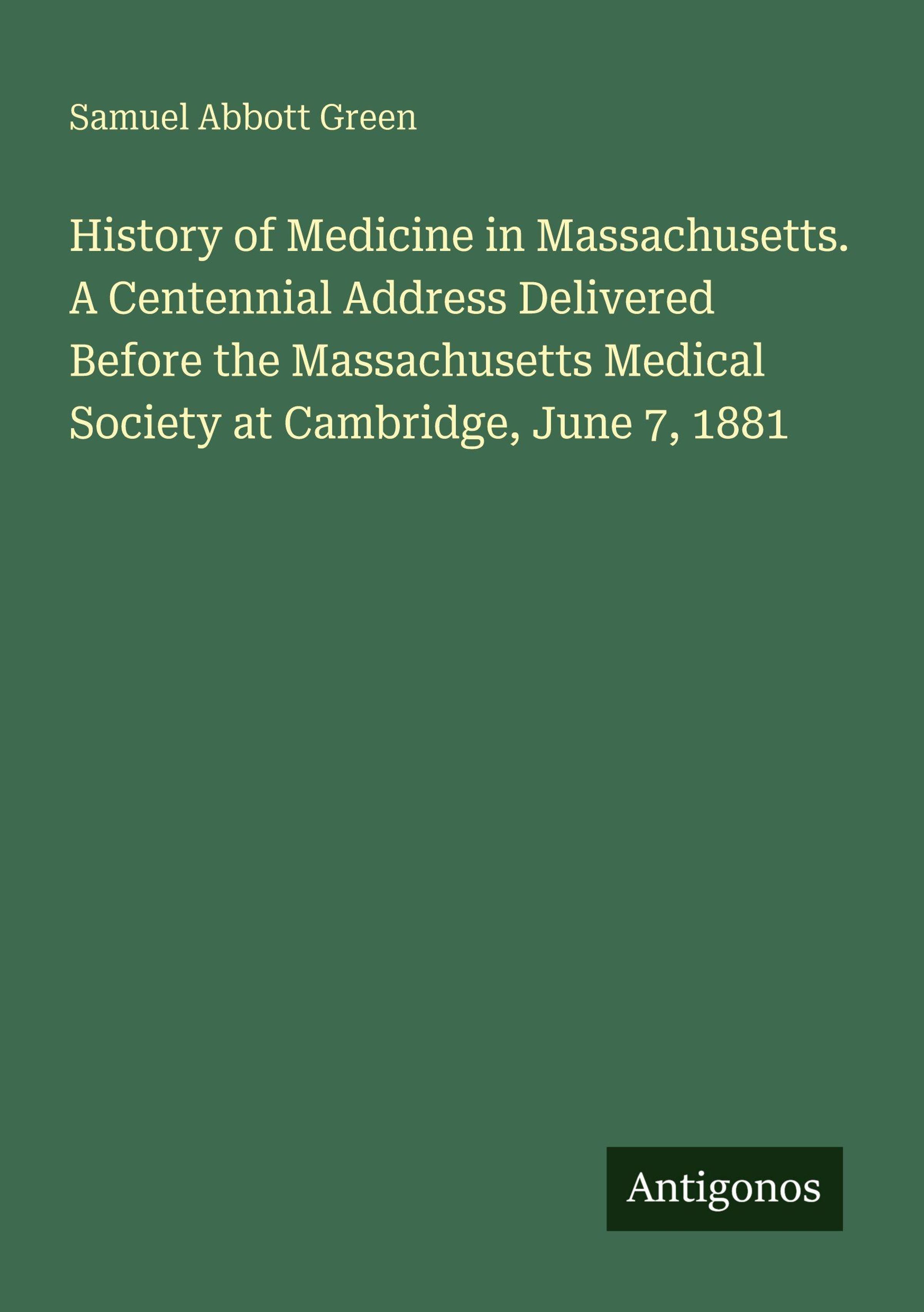 History of Medicine in Massachusetts. A Centennial Address Delivered Before the Massachusetts Medical Society at Cambridge, June 7, 1881