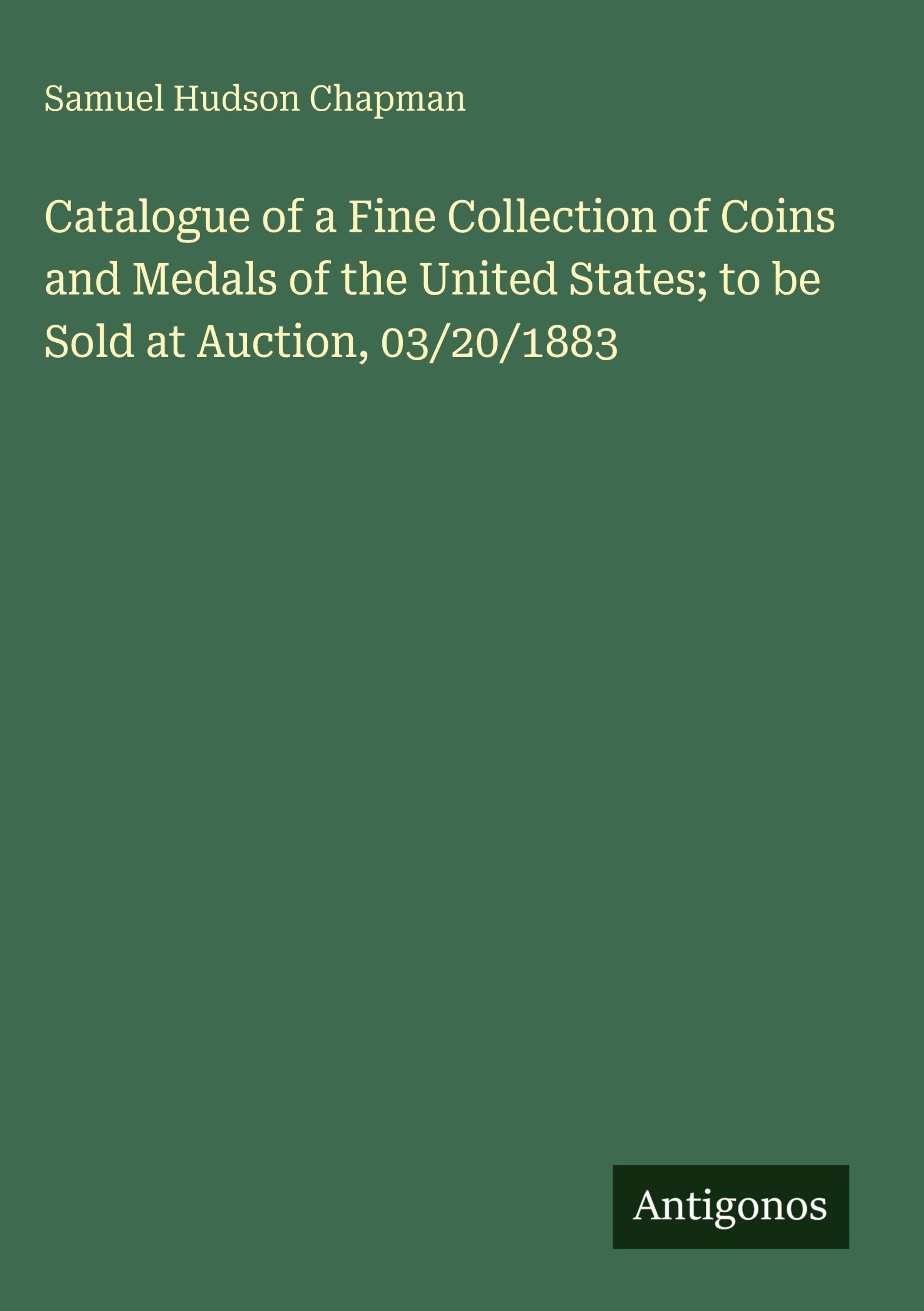 Samuel Hudson Chapman: Catalogue of a Fine Collection of Coins and Medals of the United States; to be Sold at..., Gebunden