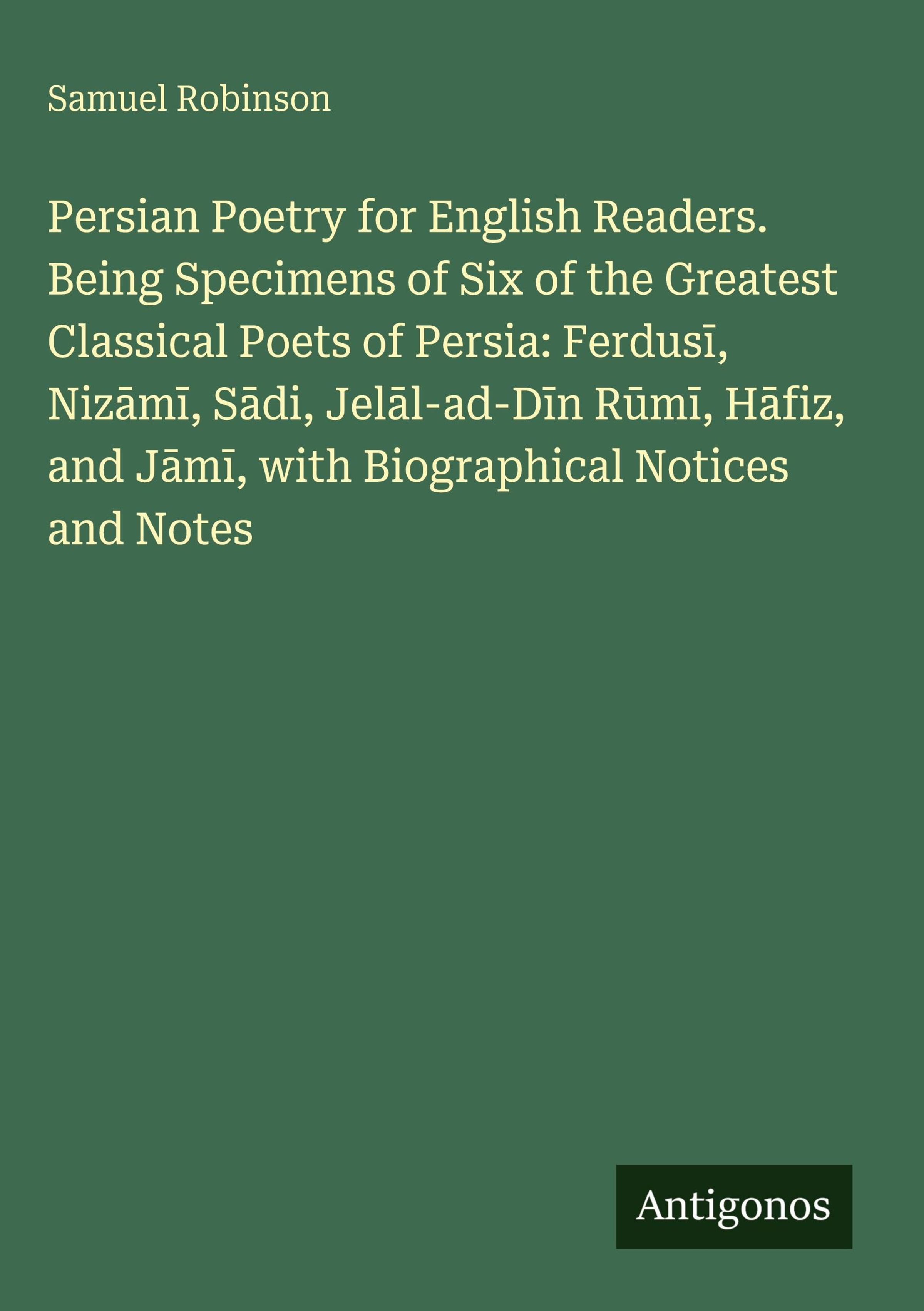 Samuel Robinson: Persian Poetry for English Readers. Being Specimens of Six of the Greatest Classical Poets of..., Gebunden
