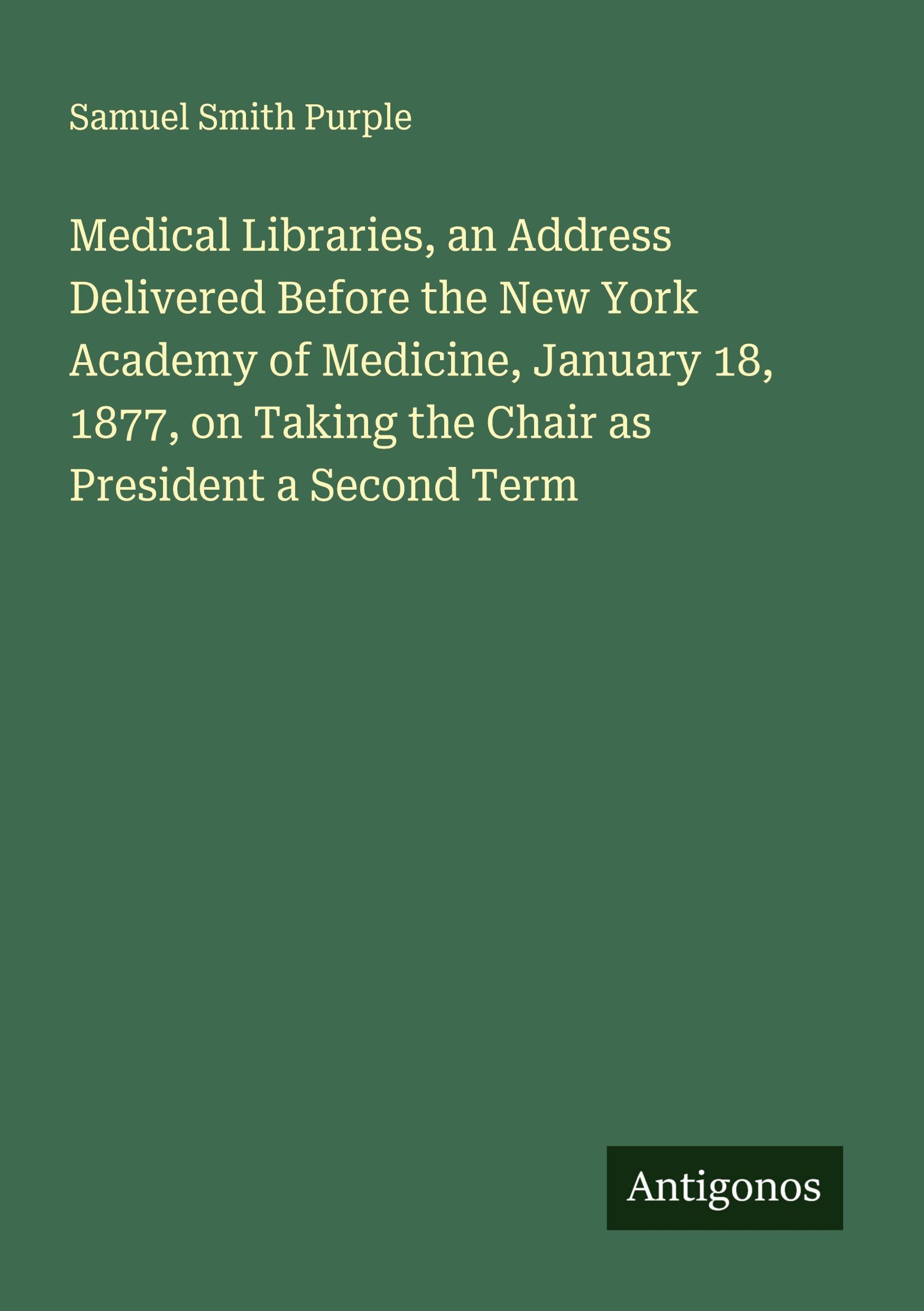 Medical Libraries, an Address Delivered Before the New York Academy of Medicine, January 18, 1877, on Taking the Chair as President a Second Term