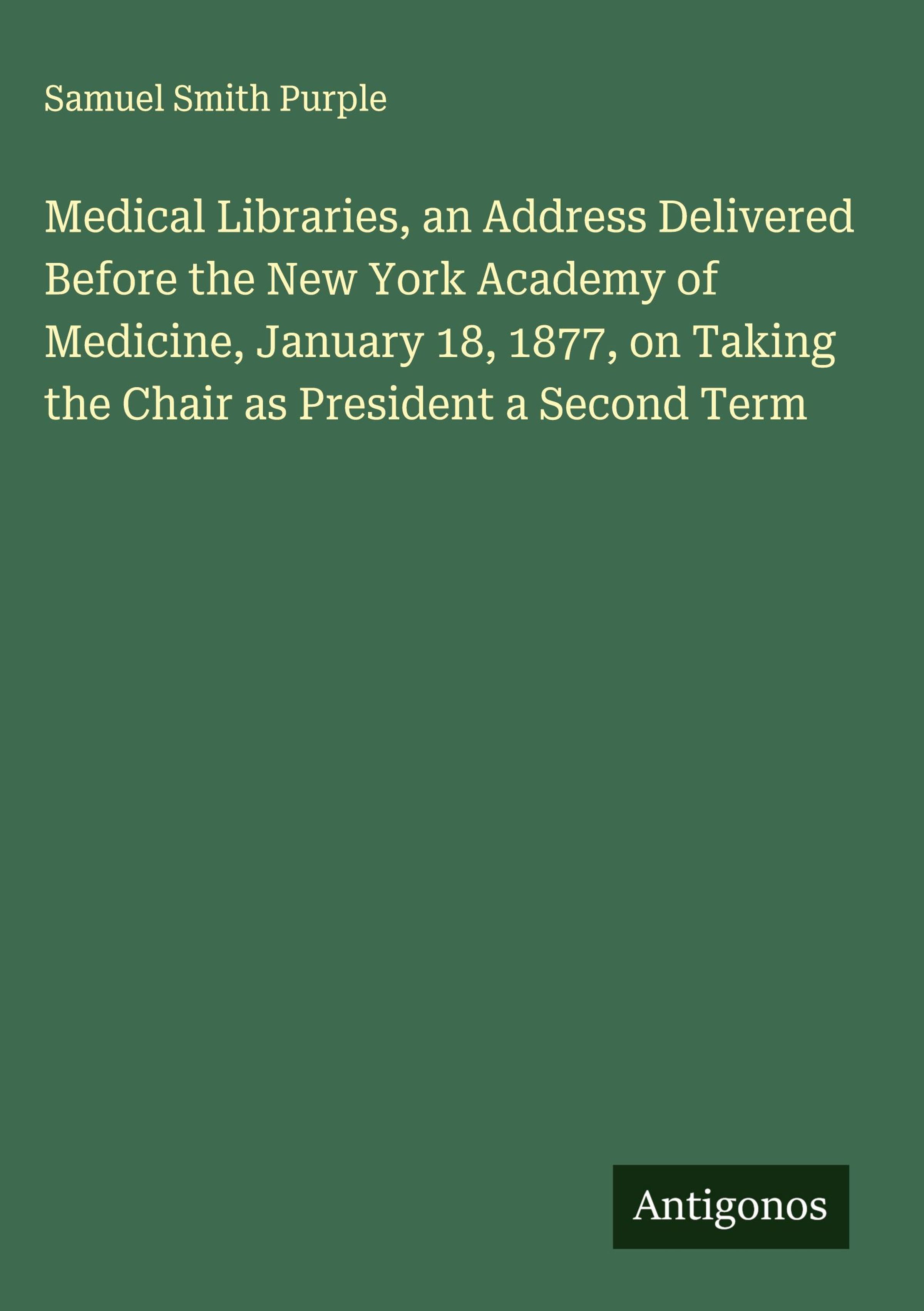 Medical Libraries, an Address Delivered Before the New York Academy of Medicine, January 18, 1877, on Taking the Chair as President a Second Term