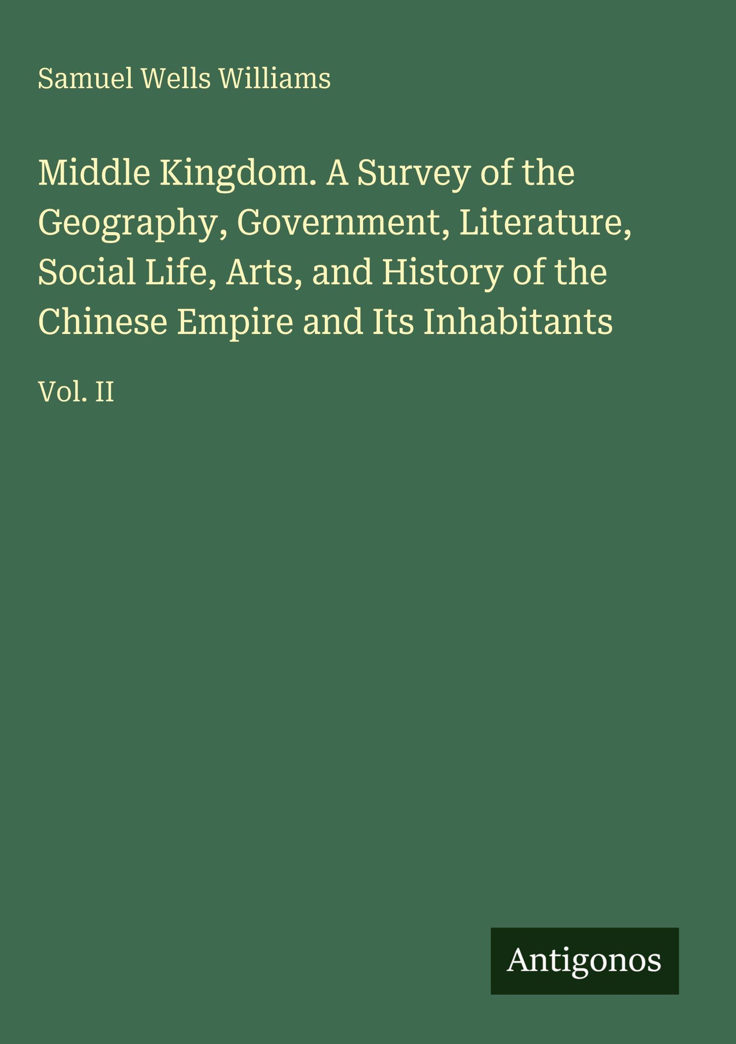 Middle Kingdom. A Survey of the Geography, Government, Literature, Social Life, Arts, and History of the Chinese Empire and Its Inhabitants