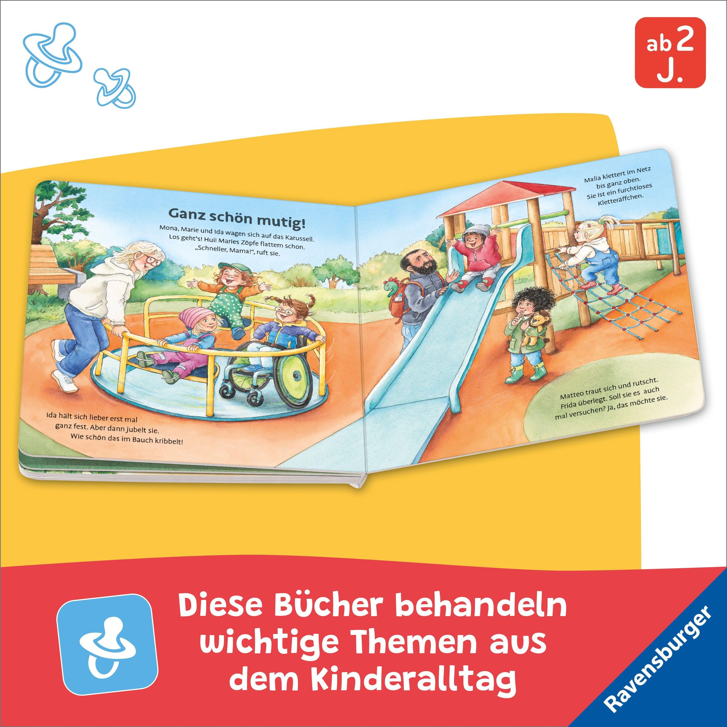 Maja ist wütend und brüllt wie ein Löwe. Mira strahlt vor Freude, als Jorgos sein Eis mit ihr teilt. Und Ida ist das große Karussell etwas unheimlich. Ob sie sich traut mitzufahren? Dieses Pappbilderbuch erzählt von den wichtigsten Emotionen aus dem Kleinkindalltag. Die ausdrucksstarken Bilder laden zum gemeinsamen Betrachten und Erzählen ein. Die kurzen Vorlesetexte geben zudem einen kindgerechten Wortschatz und erste, einfache Strategien zum Umgang mit Gefühlen an die Hand.