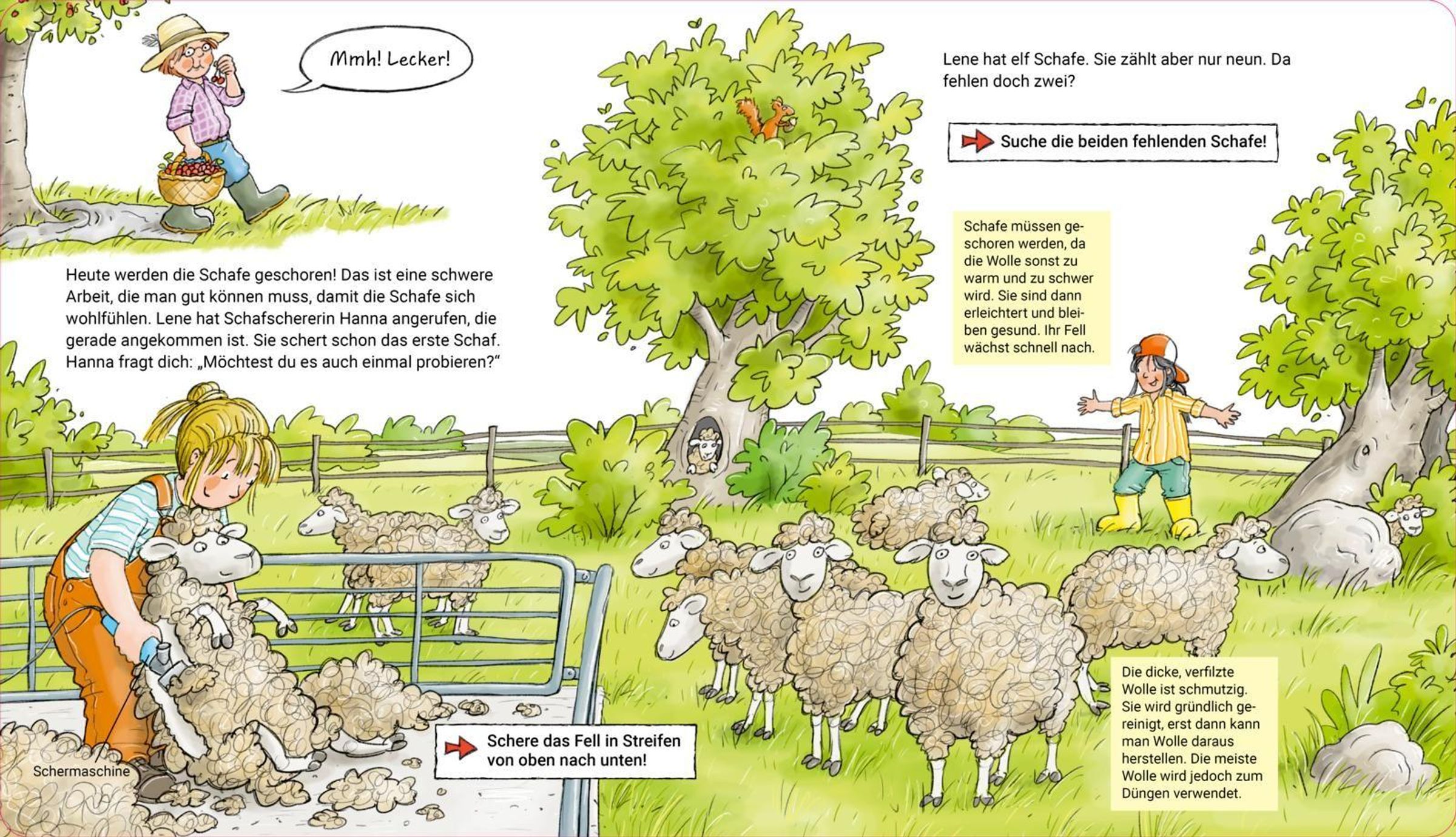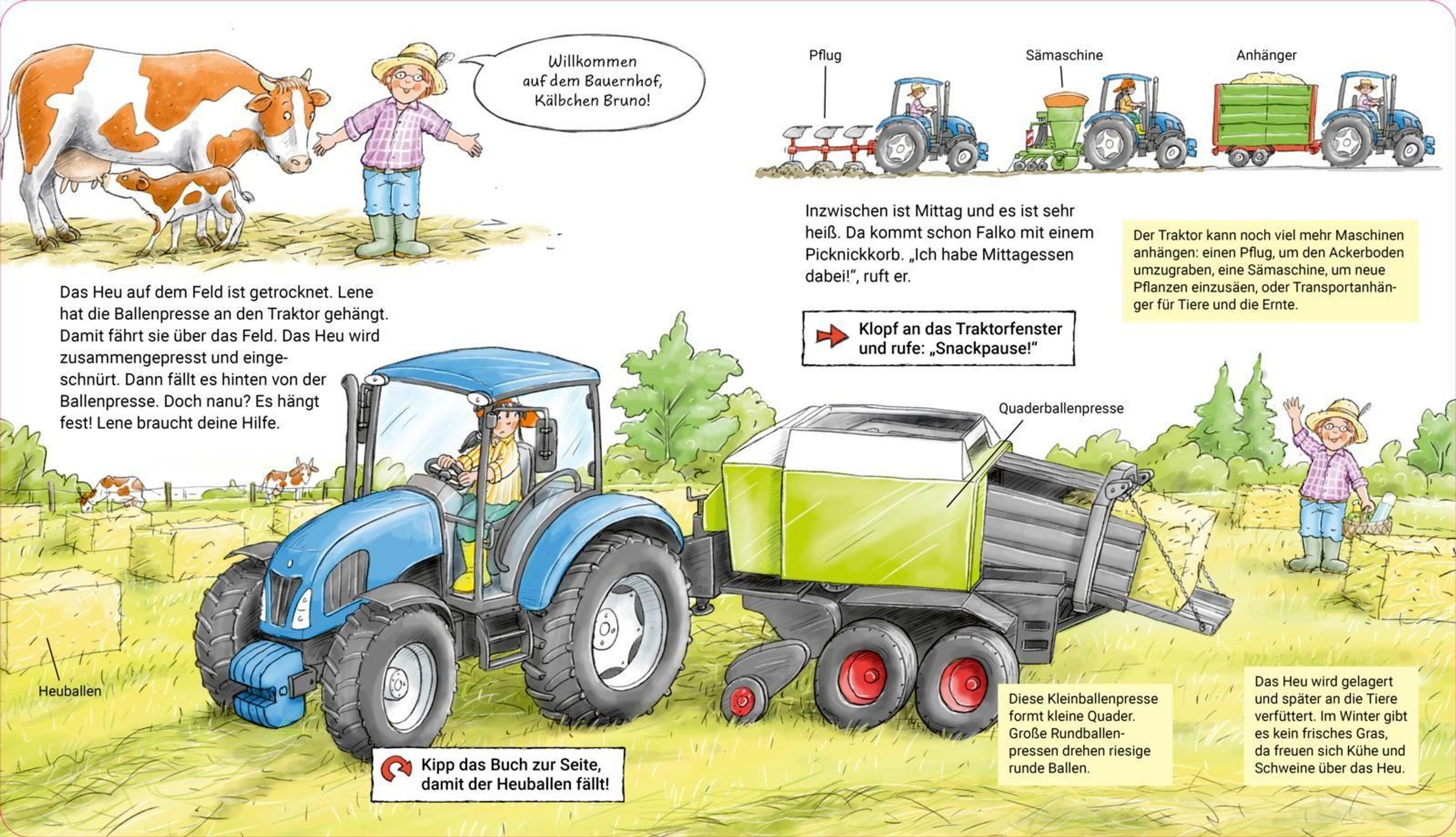 - Erstes Sachwissen: Spielerisch erfahren, wie Kühe, Schweine und Schafe leben, was ein Hufschmied macht oder warum Heuballen gewendet werden.