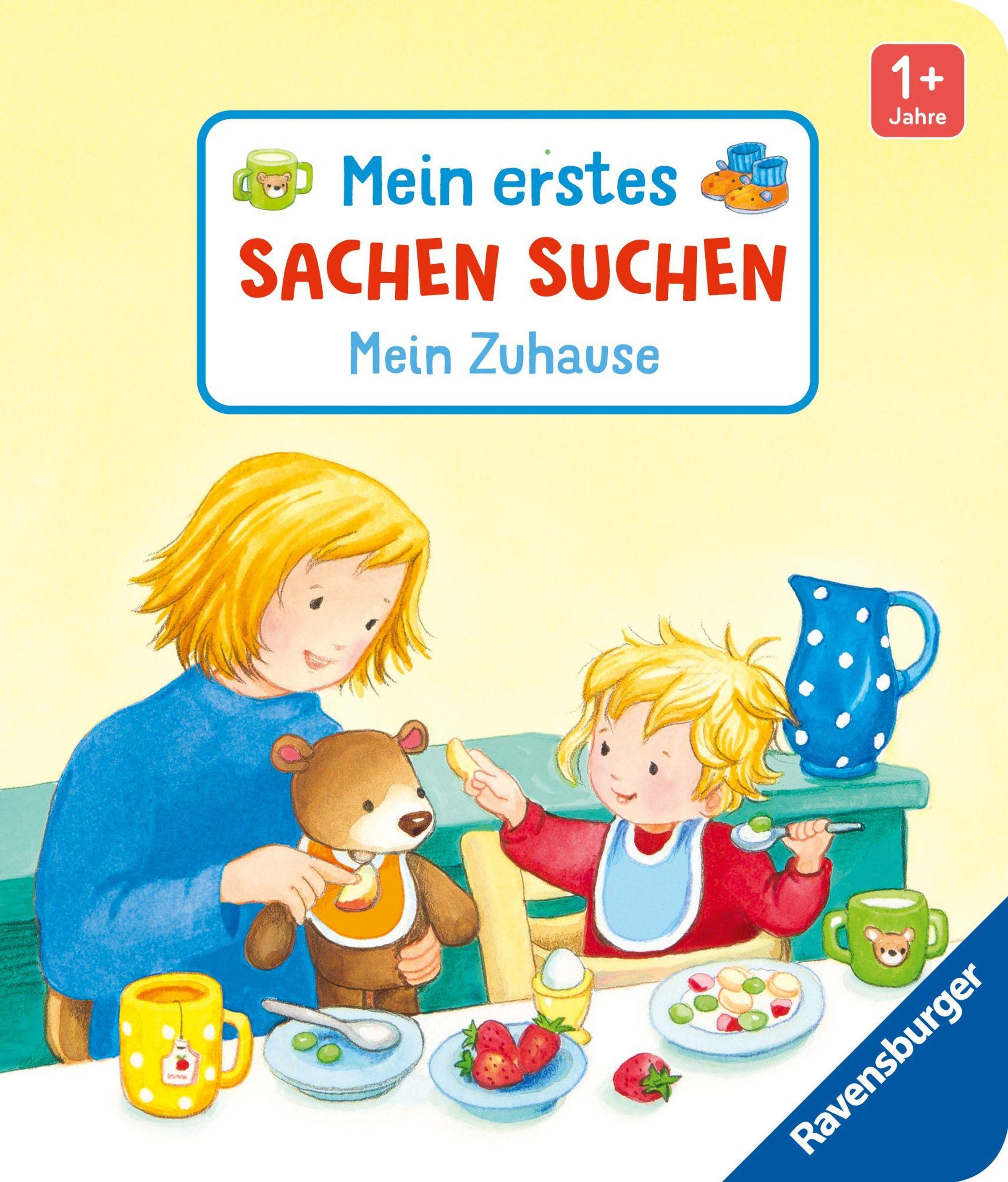 Wo sitzt der Bär? Wo liegt der Ball? Und was gibt es zu essen? Verschiedene Szenen zeigen die wichtigsten Begriffe rund um den Kinderalltag und die Familie. Auf jeder Seite laden spannende Suchbilder zum Benennen, Suchen und Wiederfinden ein.