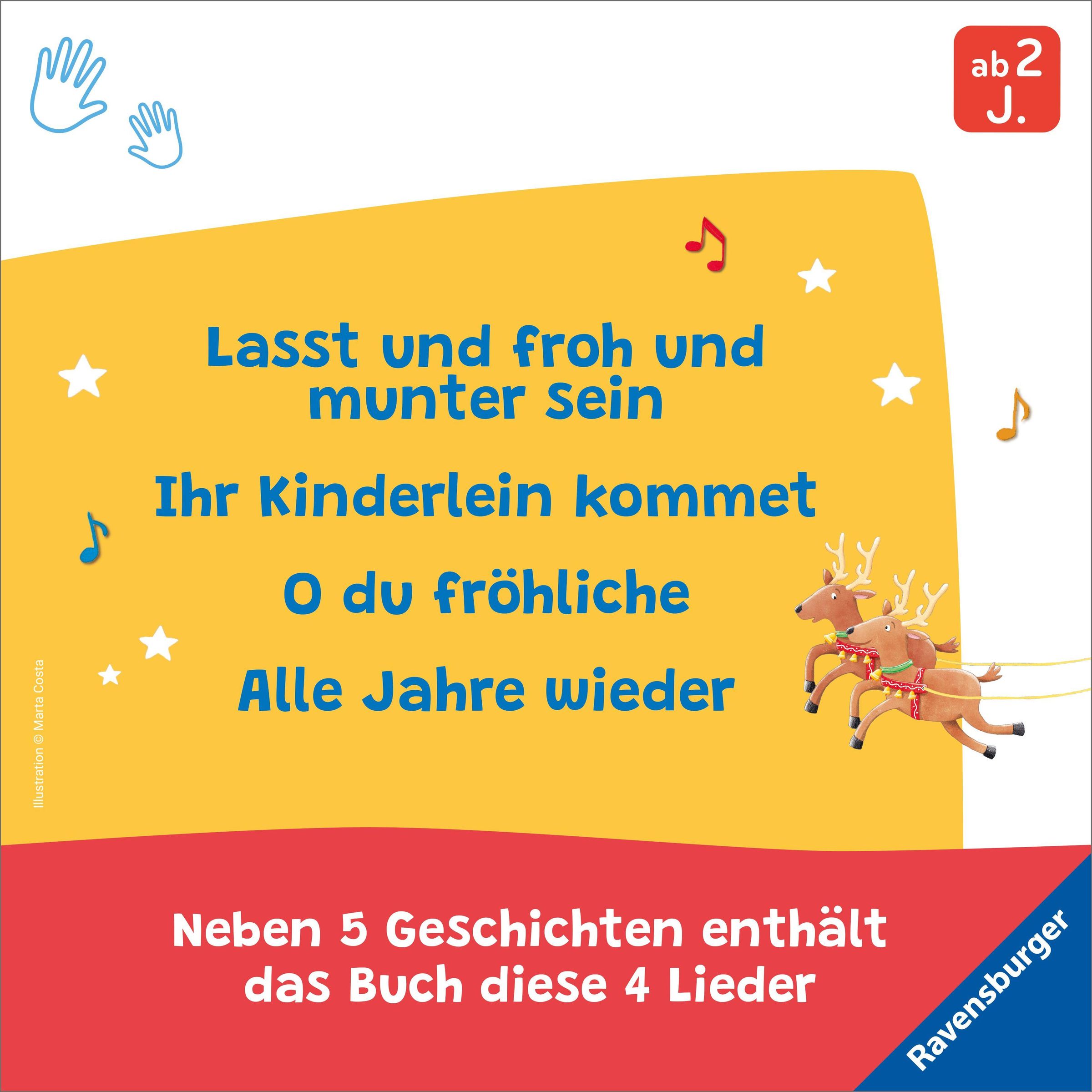 Bald ist Weihnachten! In diesem handlichen und stabilen Pappbilderbuch finden Eltern und Kinder stimmungsvolle Geschichten zum Vorlesen und zusätzlich 4 der schönsten Weihnachtslieder. So wechseln sich kurze Vorlesegeschichten und die Texte der Weihnachtslieder samt Noten ab. Zusammen mit den fröhlichen Illustrationen sorgt dies für langanhaltende Vorfreude auf das Weihnachtsfest bei Groß und Klein.