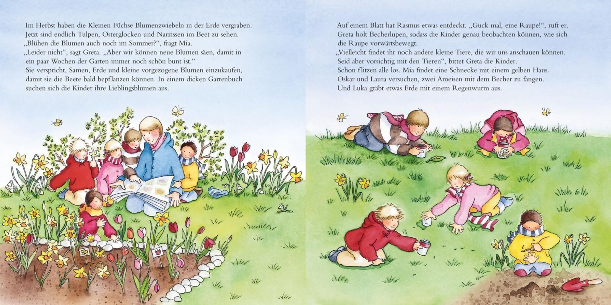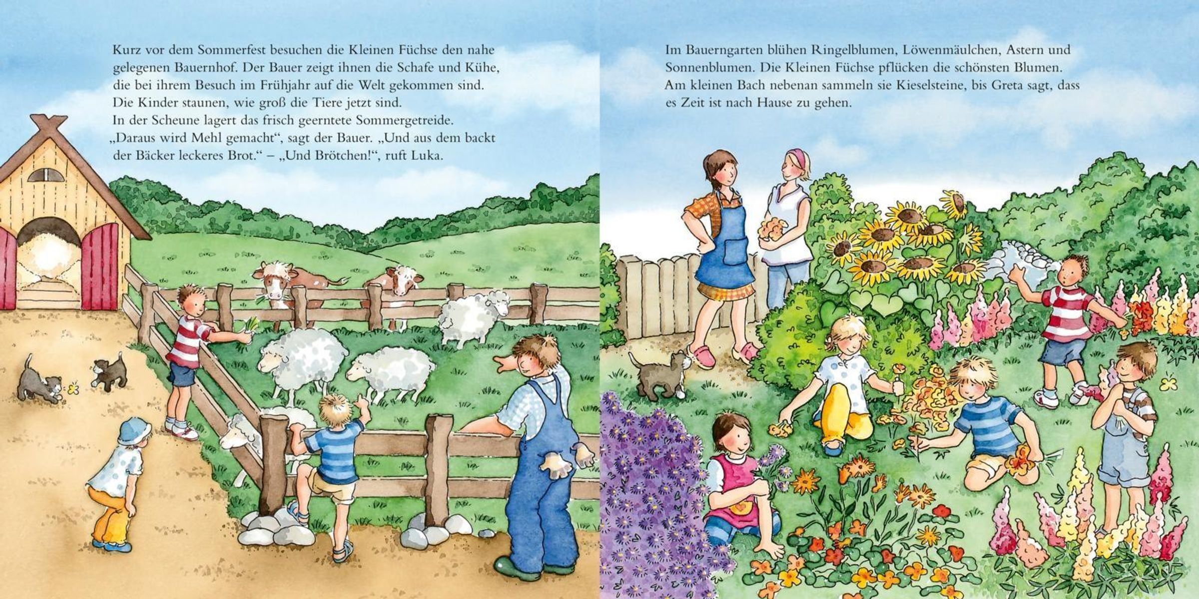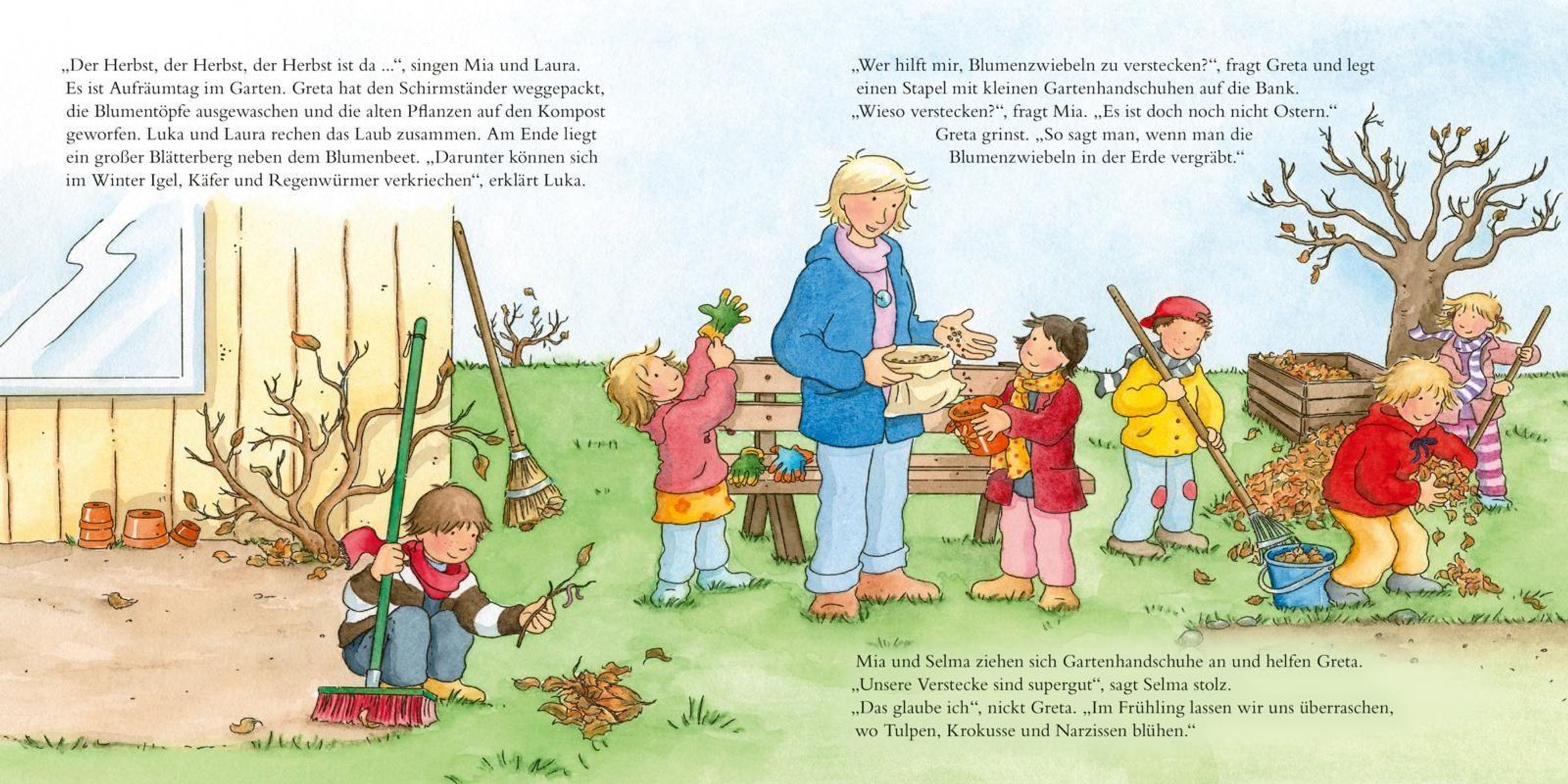 Frühling, Sommer, Herbst und Winter - das ganze Jahr hindurch gibt es im Kindergarten viel zu erleben! Sechs abwechslungsreiche Geschichten erzählen von den ersten Frühlingsblumen und von bunten Blättern im Herbst, von einem tollen Sommerfest und vom Schlittenfahren im Winter. Die Kinder basteln Osterschmuck, Laternen und Weihnachtssterne, ernten Obst und backen Kekse - jede Jahreszeit hat ihren Zauber!